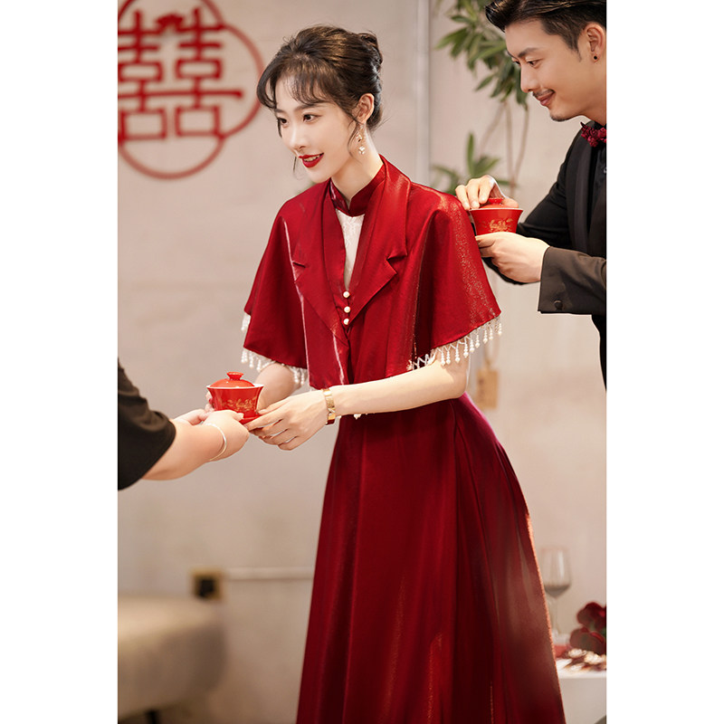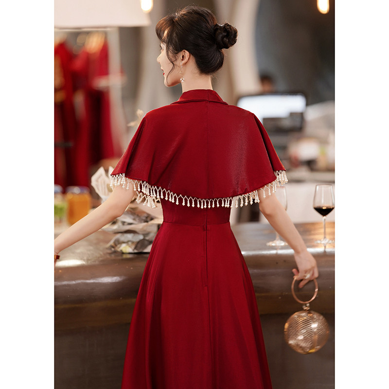 Superior Sense Toast Bride 2021 New Wedding Wine Red Engagement Satin Evening Gown Dress Woman Long Version Summer