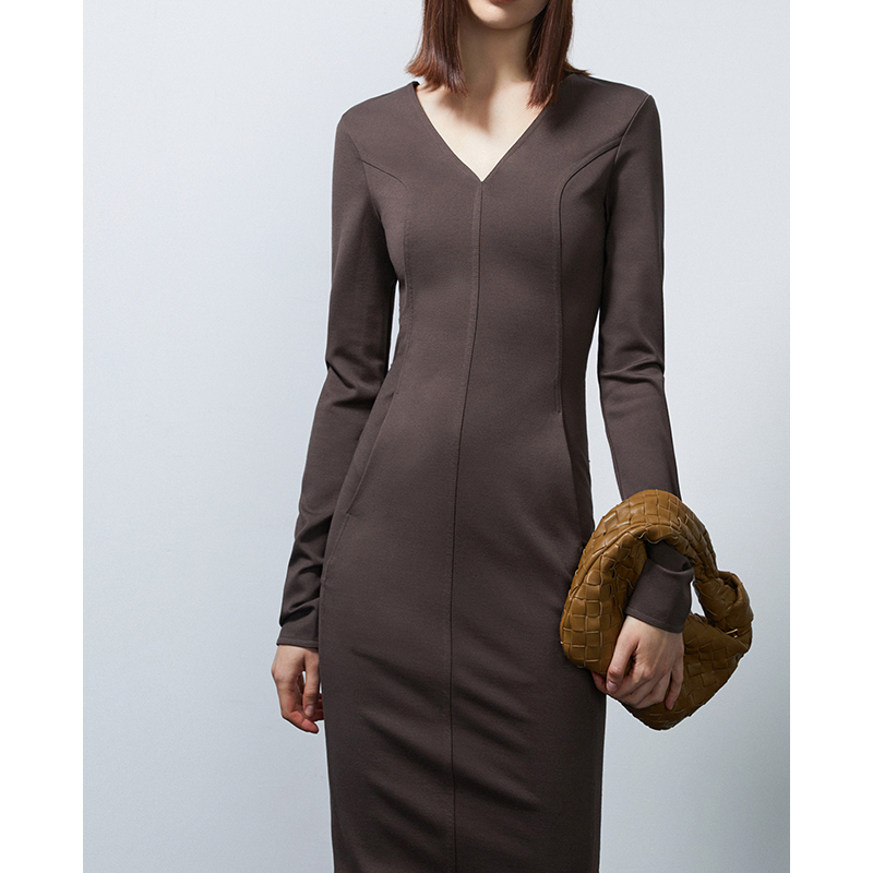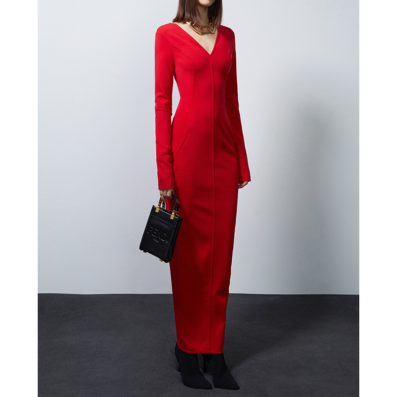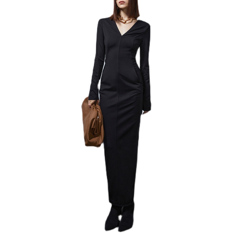 Z boss European and American minimalist V lead long sleeve temperament improvement qipao wind ruffled back to the coattails of the coattails and long version of the women