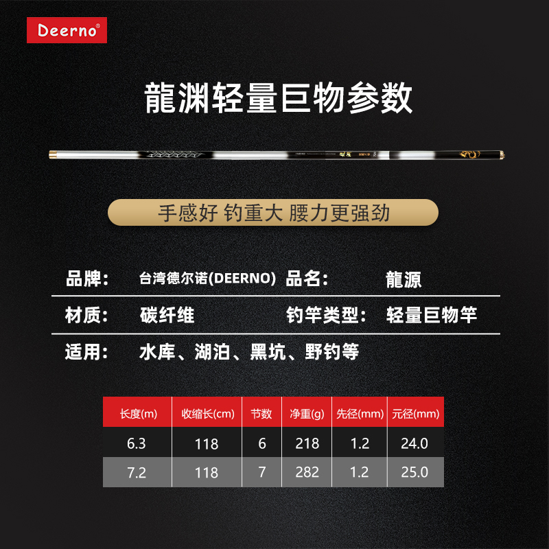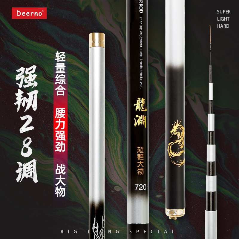 Taiwan Delno ultra-lightweight large rod ultra-light hard 28 tone carbon platform fishing rod black pit brand fishing rod Longyuan