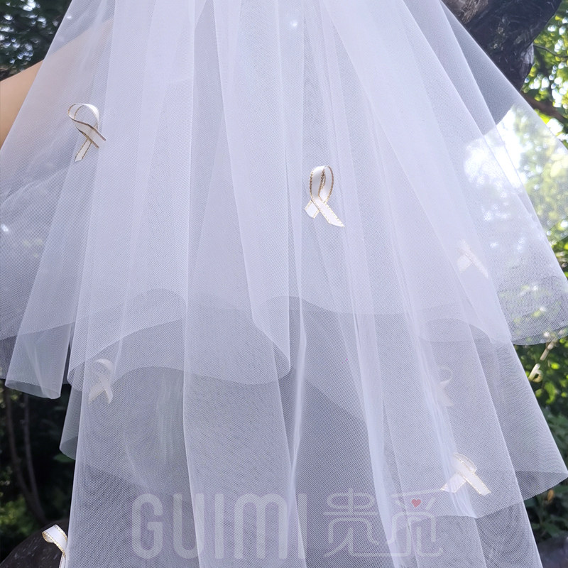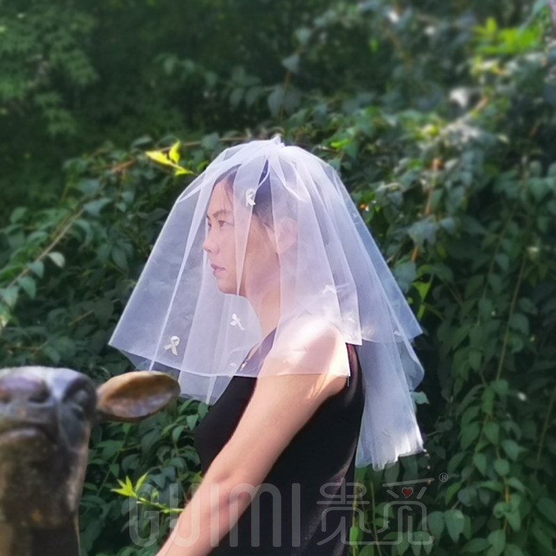 2022 bride begging for wedding dress Senior marriage Pilot registration of small head yarn short Butterfly Knot Light Wedding Drape Headwear