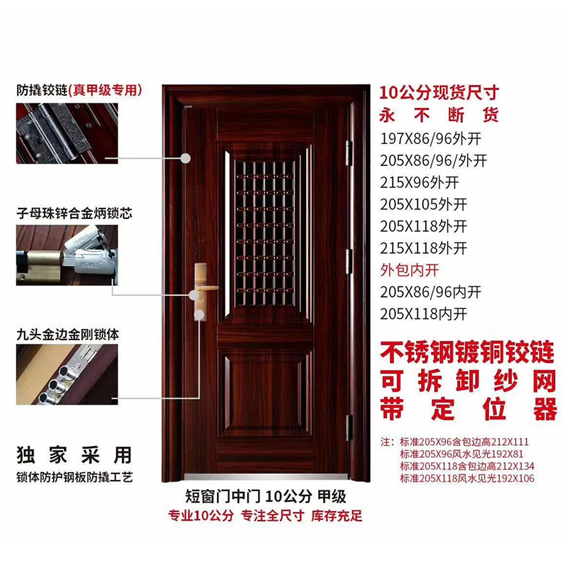 Short window and middle door Class A 10 cm Detachable diamond gauze for safe access Class A 10 cm Backgammon Class A 10 cm Happiness No. 1 Class A 10 cm (standard configuration