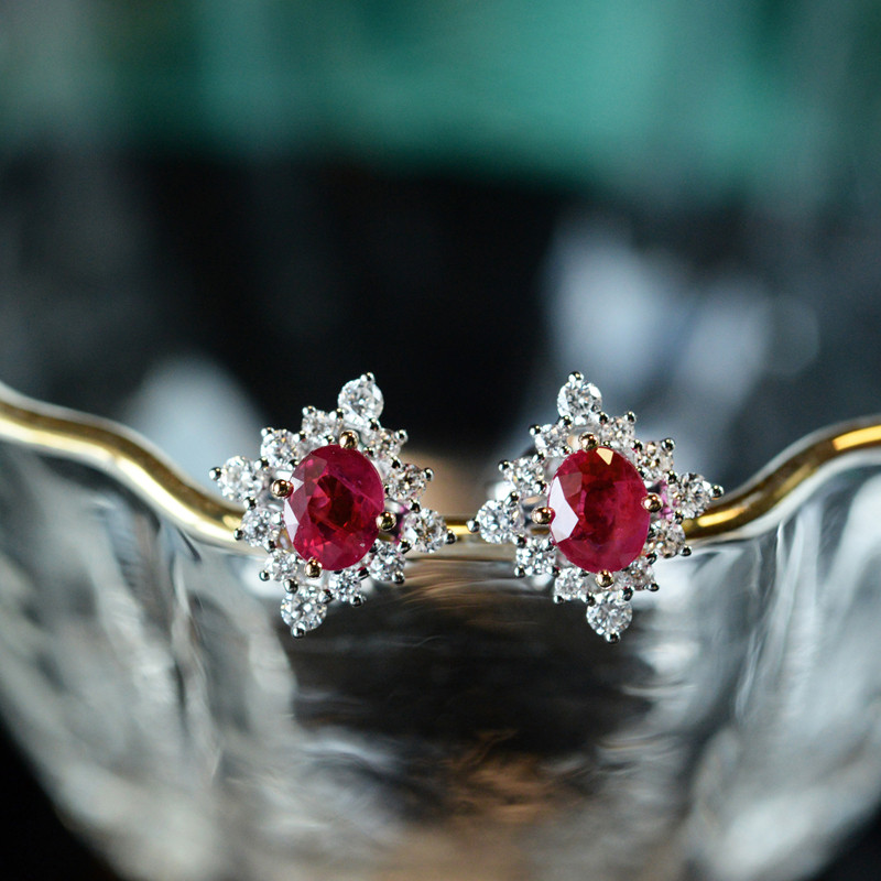 "Weijia" Lingfeng Natural high-quality rubies totaling about 60-70 points 18k white gold with diamond earrings