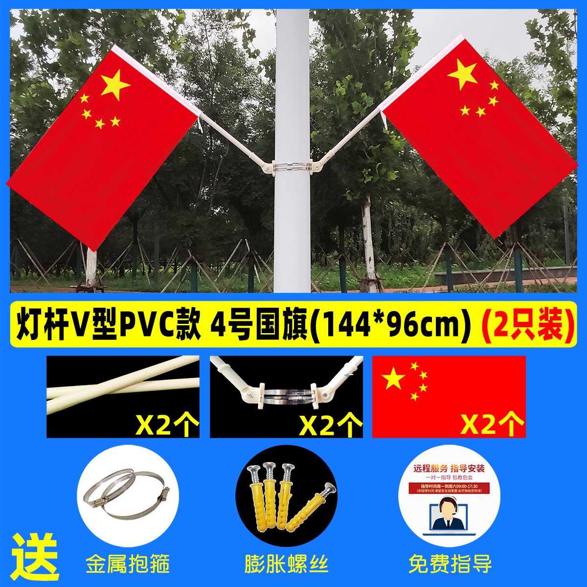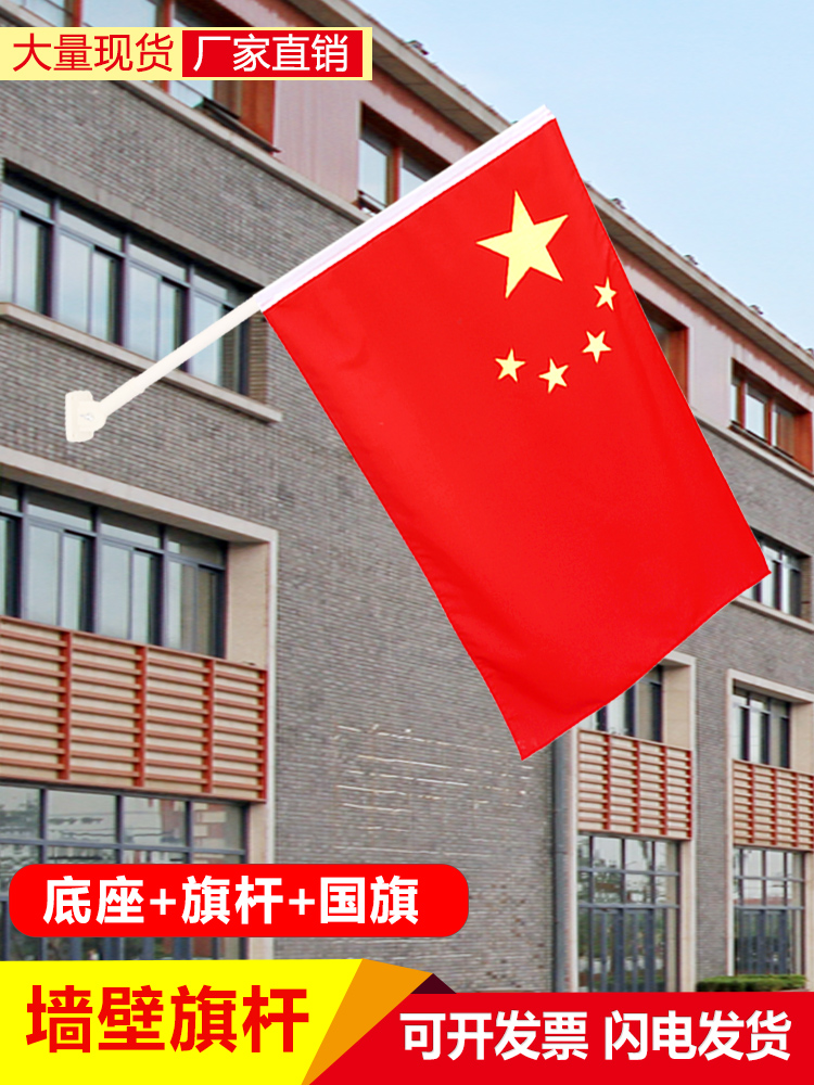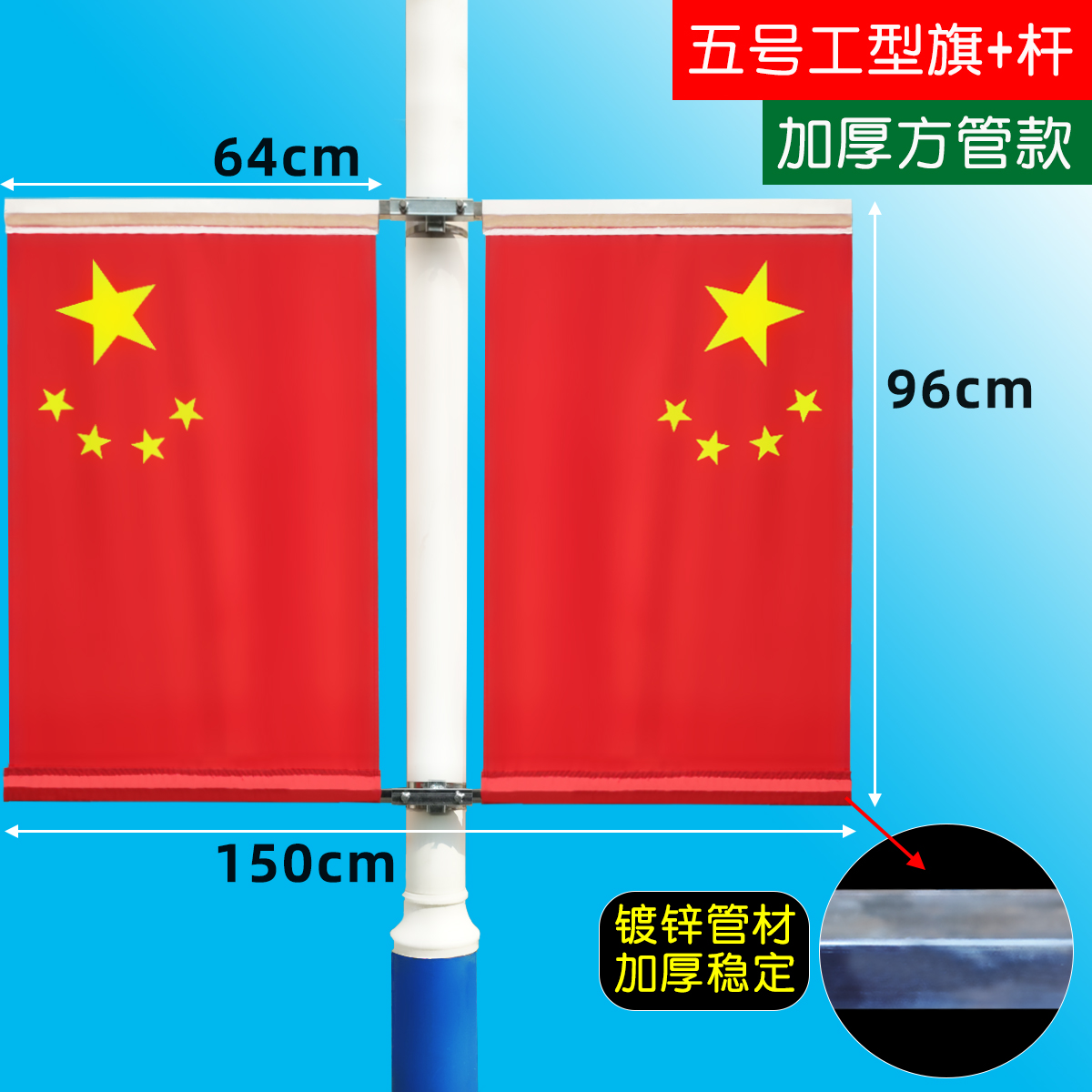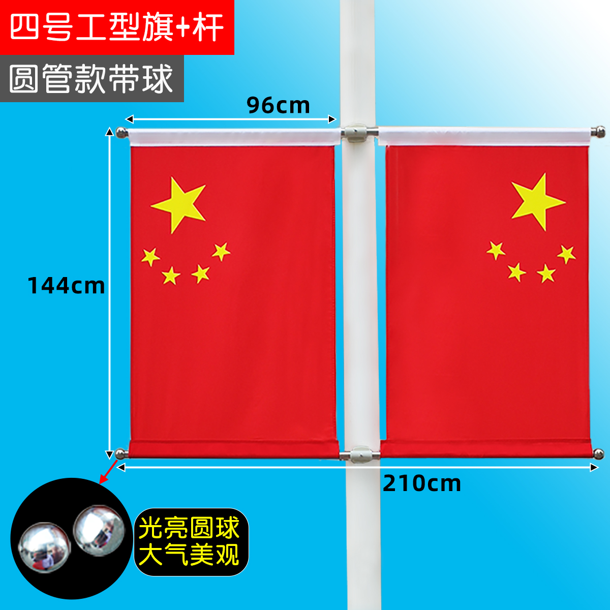Lamp-lever-flag 5 Number of street lights Flag 4 Decorated with National Flag Made-in-work Flag Five Star Red Flag Shelf National Day Two sides Party Flag Obliquely Inserted Outdoor China Waterproof Sunscreen Nano 123