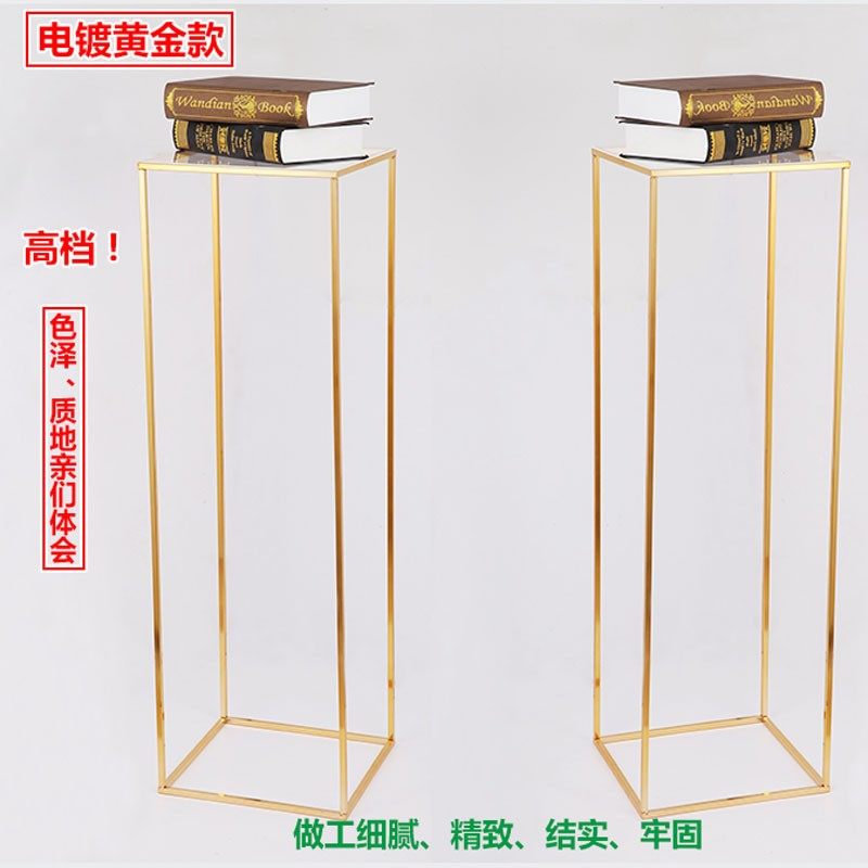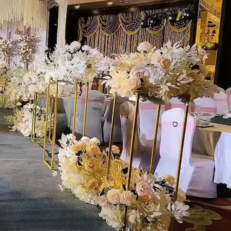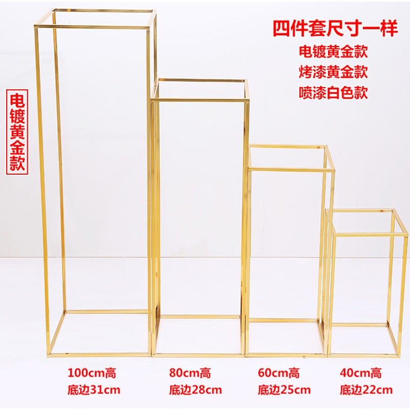 New wedding iron geometric square frame road guide electroplated golden flower stand wedding hall scene layout T stage decoration stand