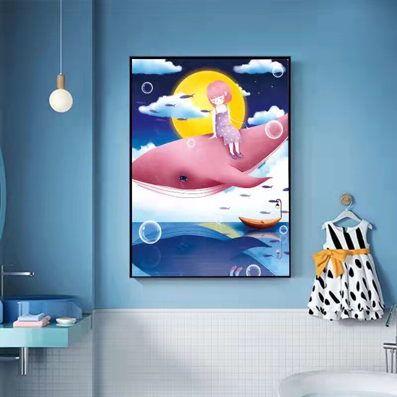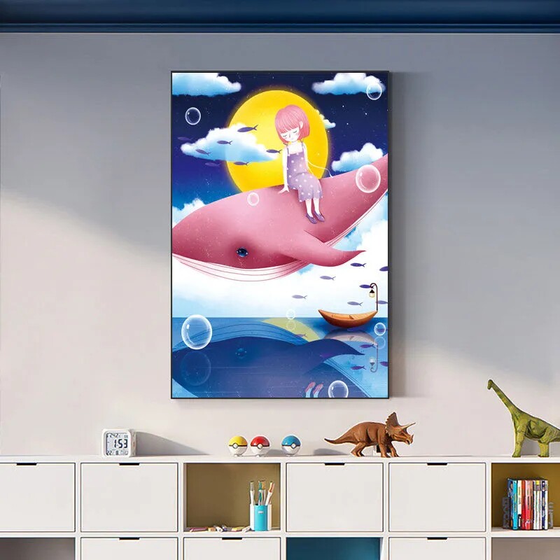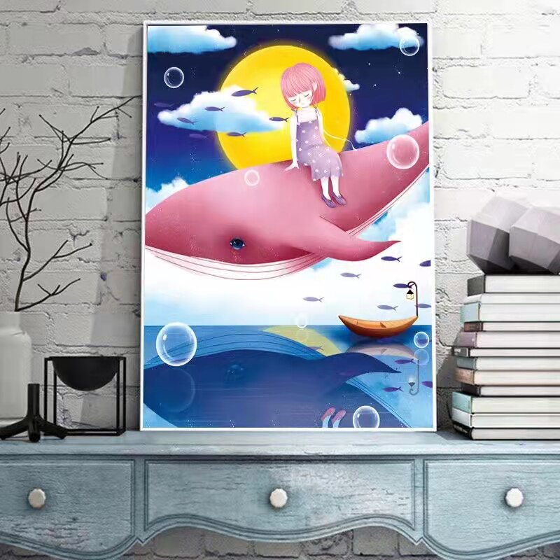 Whale Girl Cross Stitch 2022 New Thread Embroidery Living Room Small Pieces Cartoon Cute Children Bedroom Hand Embroidery