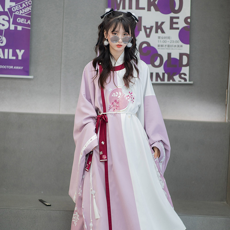 Pool Xia Qiaqiu: Rotary Round Collar Robes One-Piece Pleat Skirt Original Improved Hanfu Women