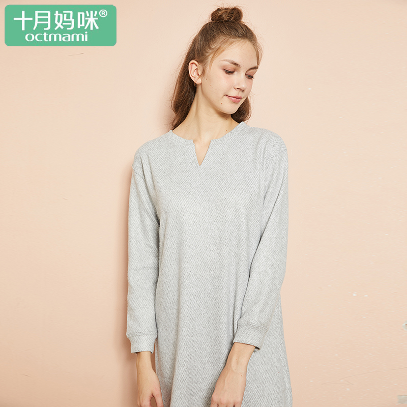 October Mommy Maternity Dress 2021 Autumn New Texture Knit Maternity Dress Mid-length Loose Fashion