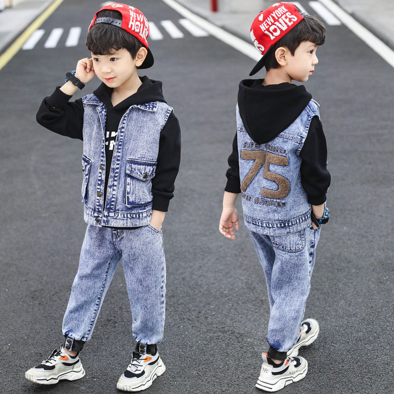 Boy Children's Fall Ocean Cowboy Horse Chia Suit 2022 New CUHK Boy Boy Autumn Clothing Trendy Three Sets