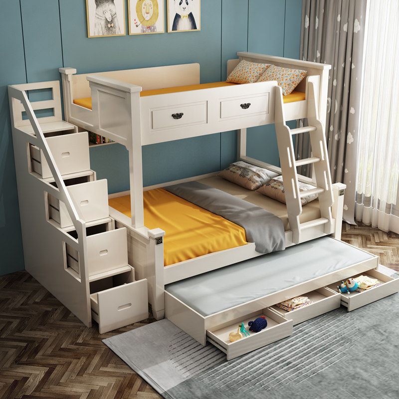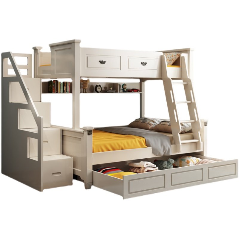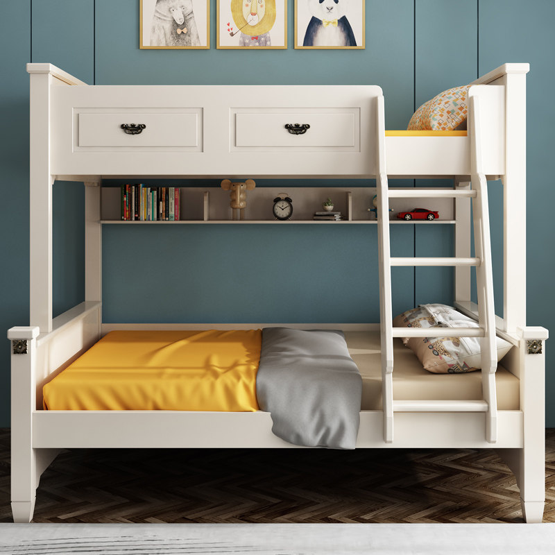 American high and low bed Children solid wood small apartment upper and lower wooden bed bunk bed white mother bed combination bed adult