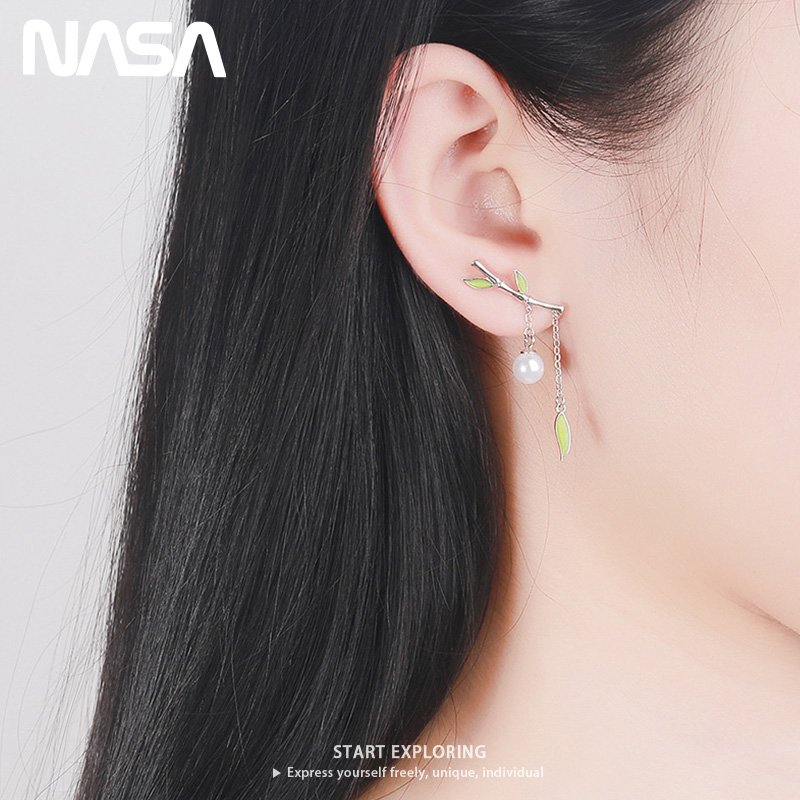 New whole body s925 silver earrings girls bamboo tube pearl earrings retro Chinese style asymmetric small fresh earrings