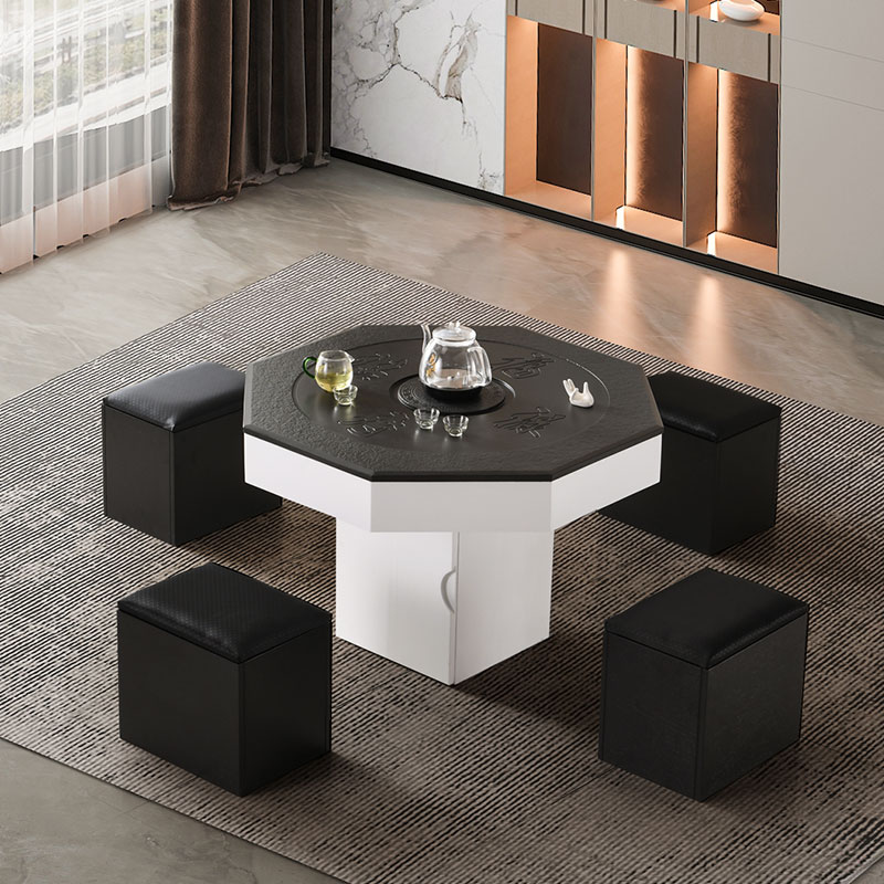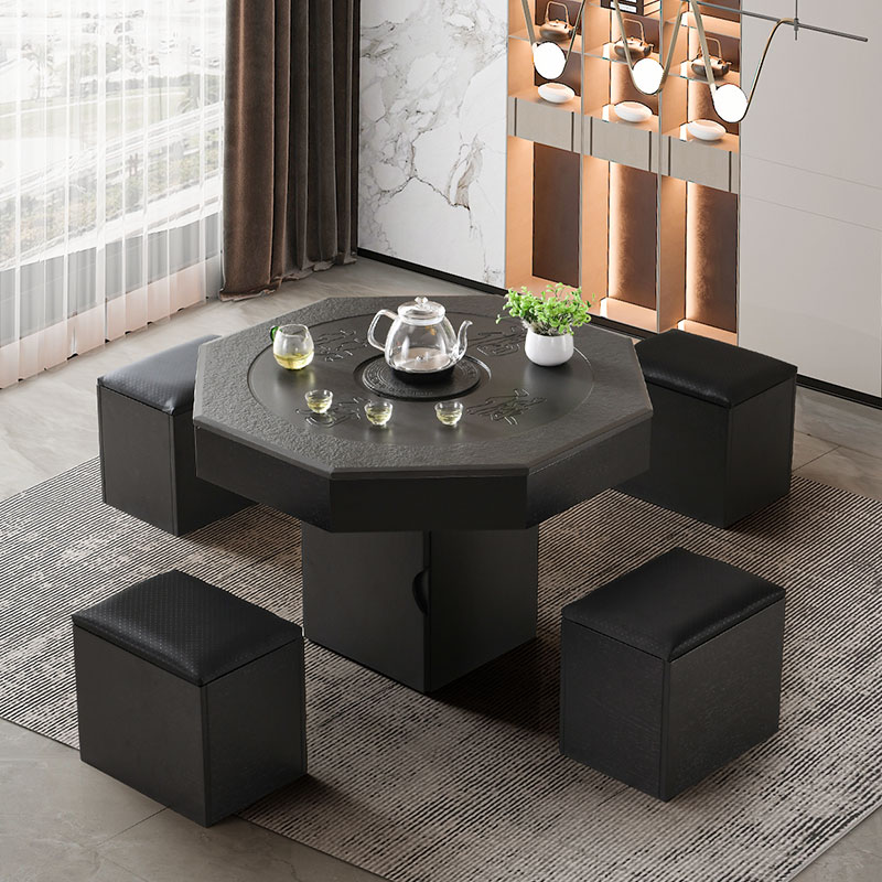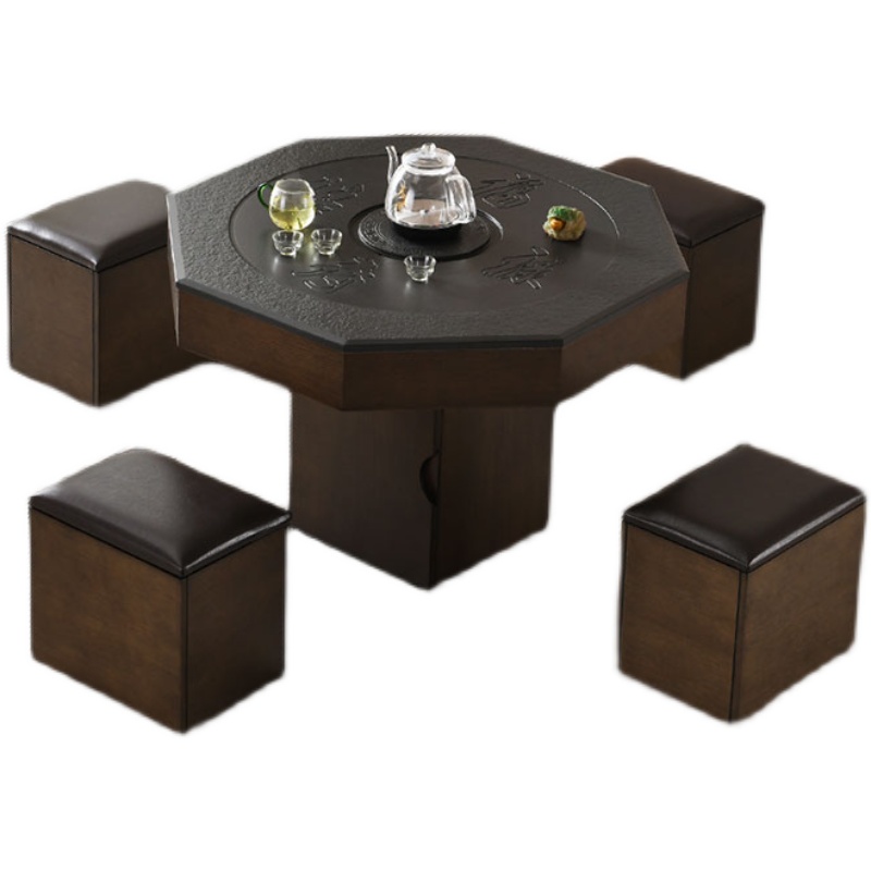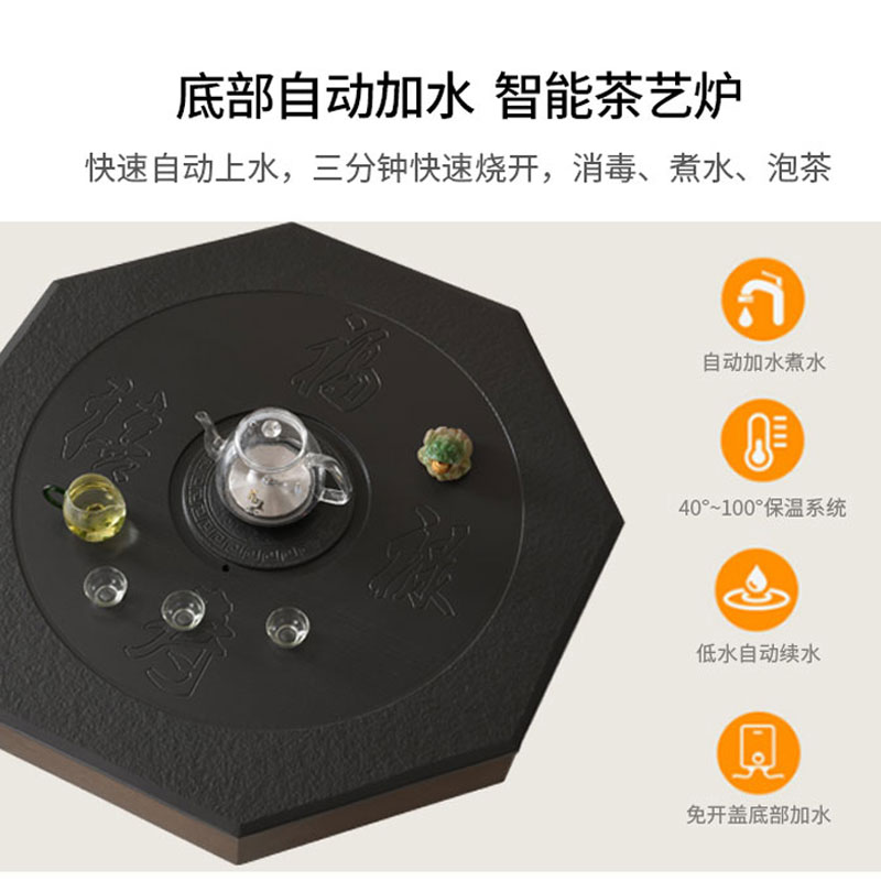 Fire stone round drinking tea table home small tea table kung fu tea table balcony tea table and chair combination solid wood high-end intelligence