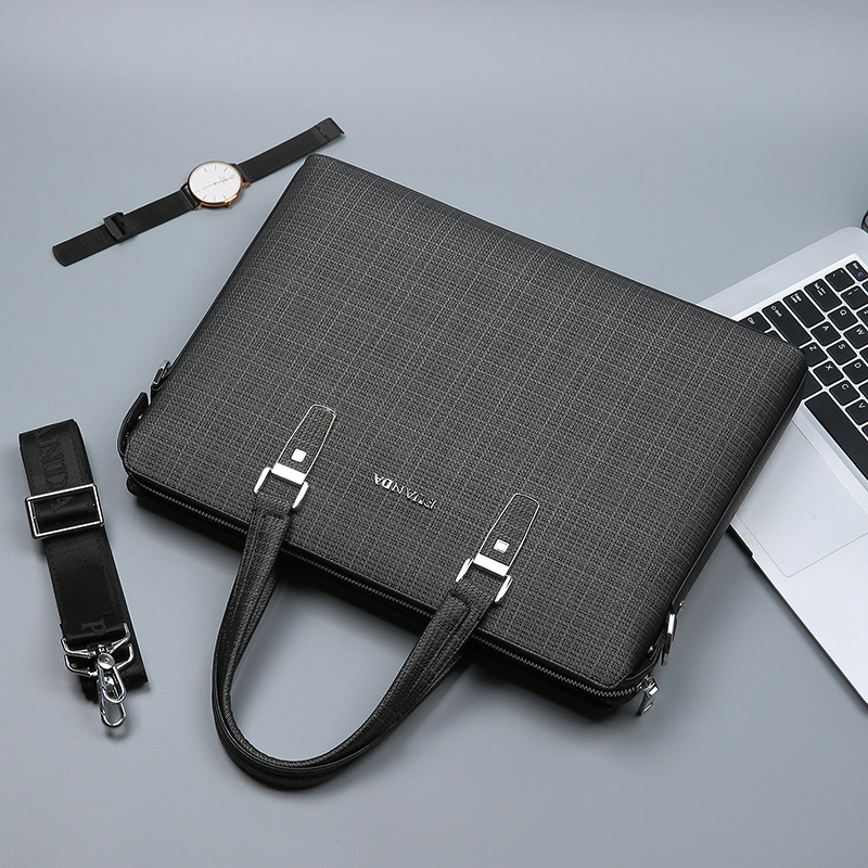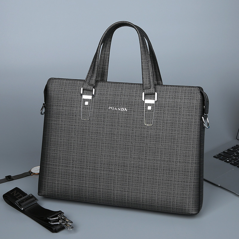 Grid Men's Bag Portable Cross Section Business Briefcase Large Capacity Casual Hand Carry Computer Bag Texture Damp Shoulder Bag