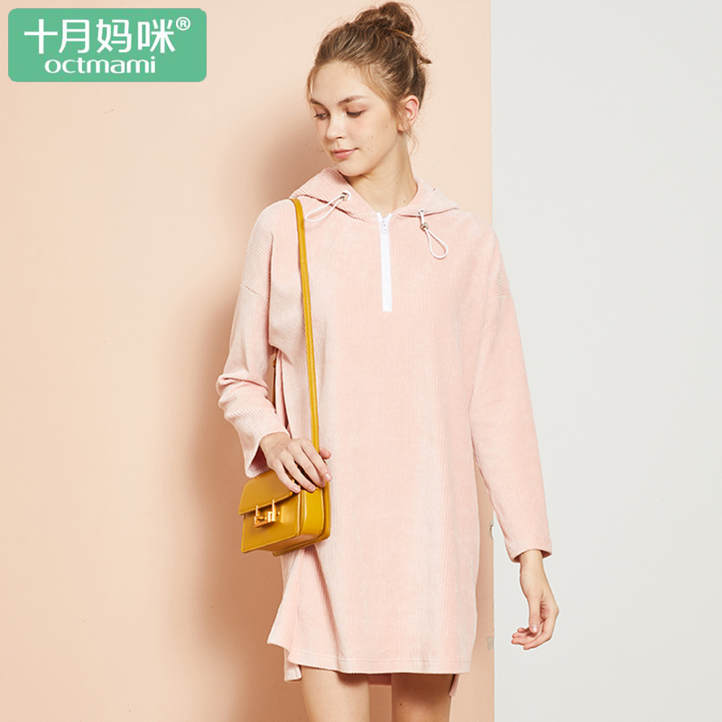 October Mommy maternity dress autumn new maternity dress long version long-sleeved top corduroy loose fashion autumn