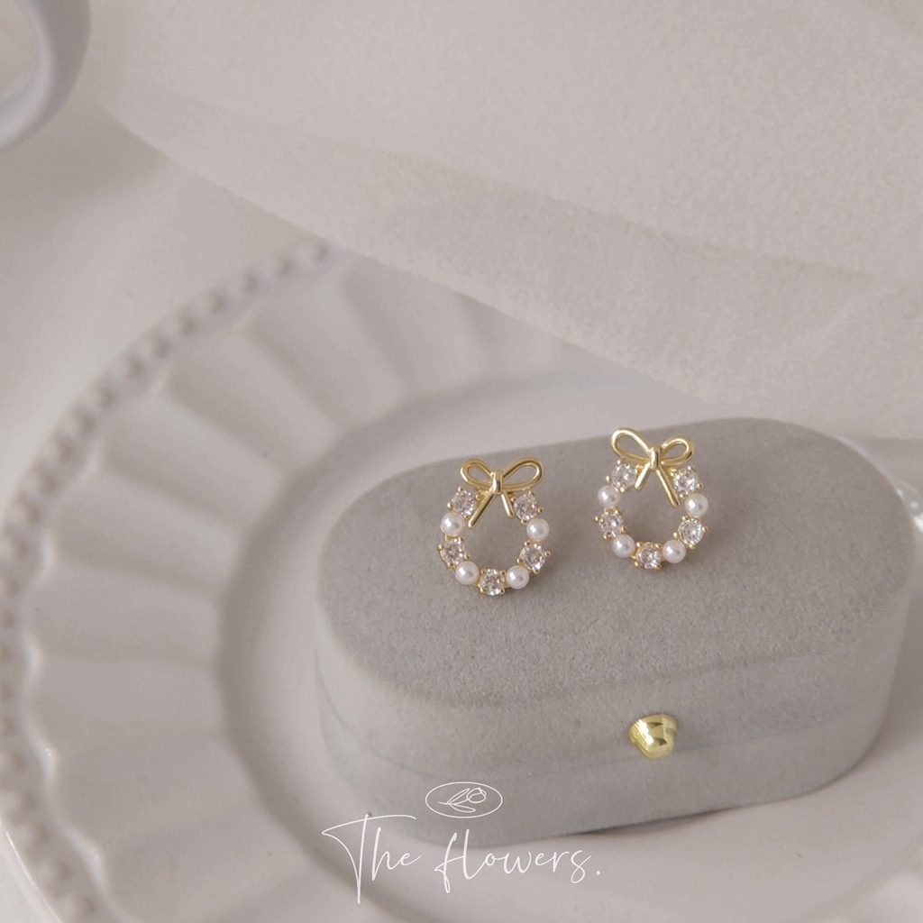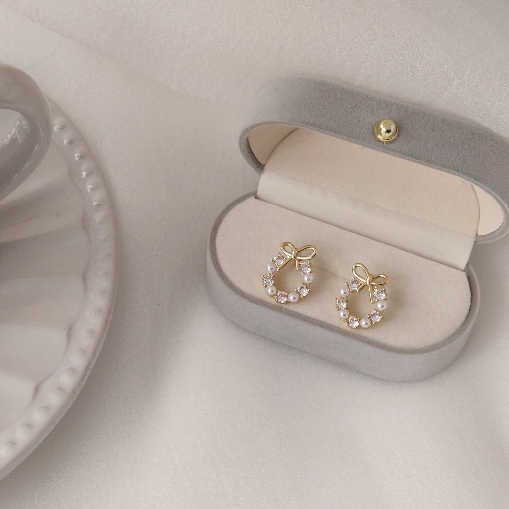 GANMOGU advanced design sense temperament female earrings silver needle small pearl earrings earrings clip diamond bow