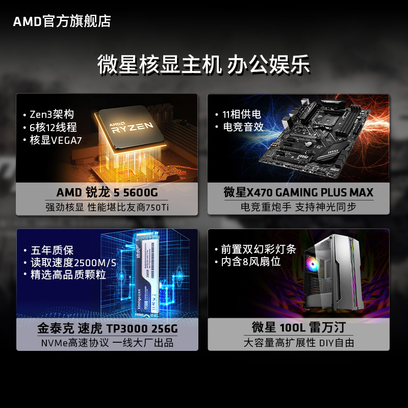 AMD Microstar 5600G Nuclear Explicit Host Desktop Computer Complete Diy Complete Machine Assembly Electromechanical Arena Games Hero League Live Office Home Design No Graphics Card Host