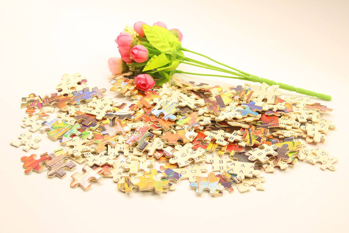Dark gray girl's wedding dress 1000 pieces Light gray candy house 1000 pieces Lemon yellow starry sky ocean 1000 pieces Green bridge and flowing water 1000 pieces