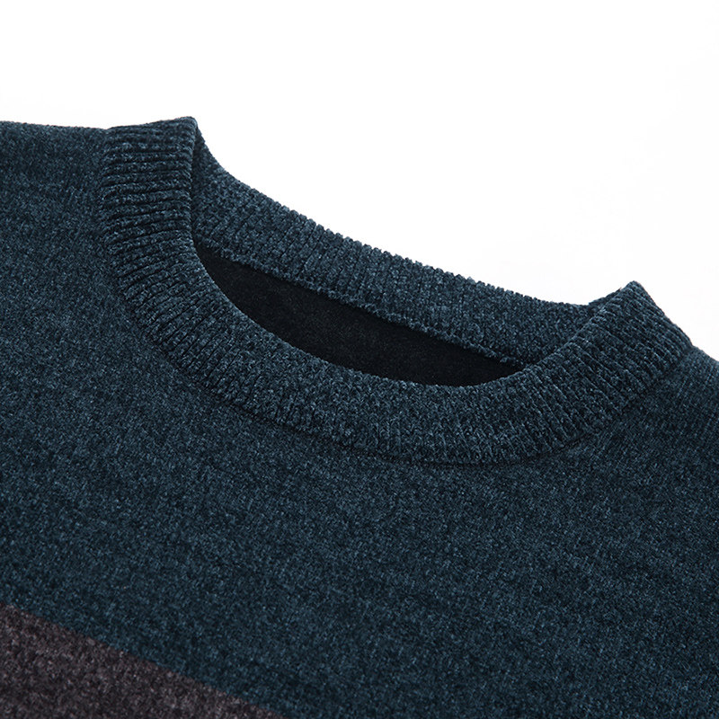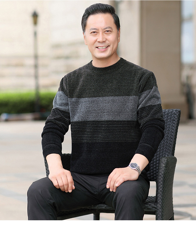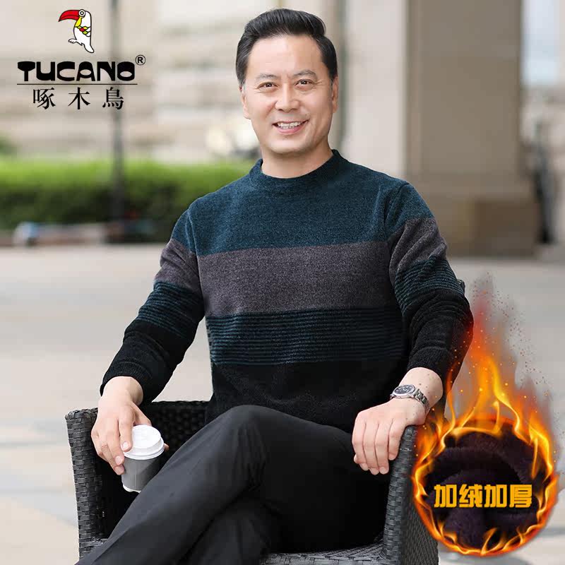 Woodpecker middle-aged and elderly men's large size casual round neck plus velvet thick thermal underwear knitted bottoming shirt top winter