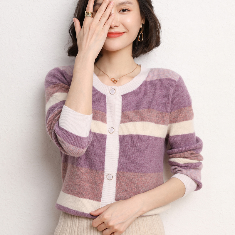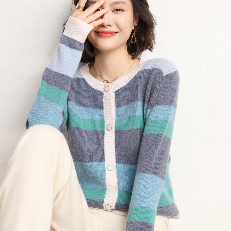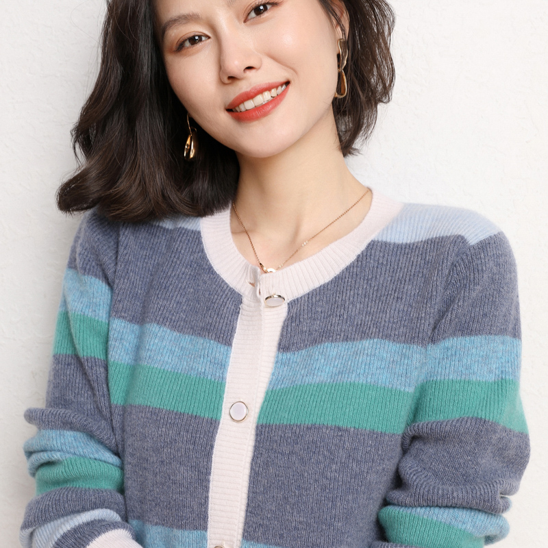 Autumn Winter Outings Collared Knit Cardiovert Women New Round Collar Loose non-cashmere sweater Coloured hit bottom jacket jacket