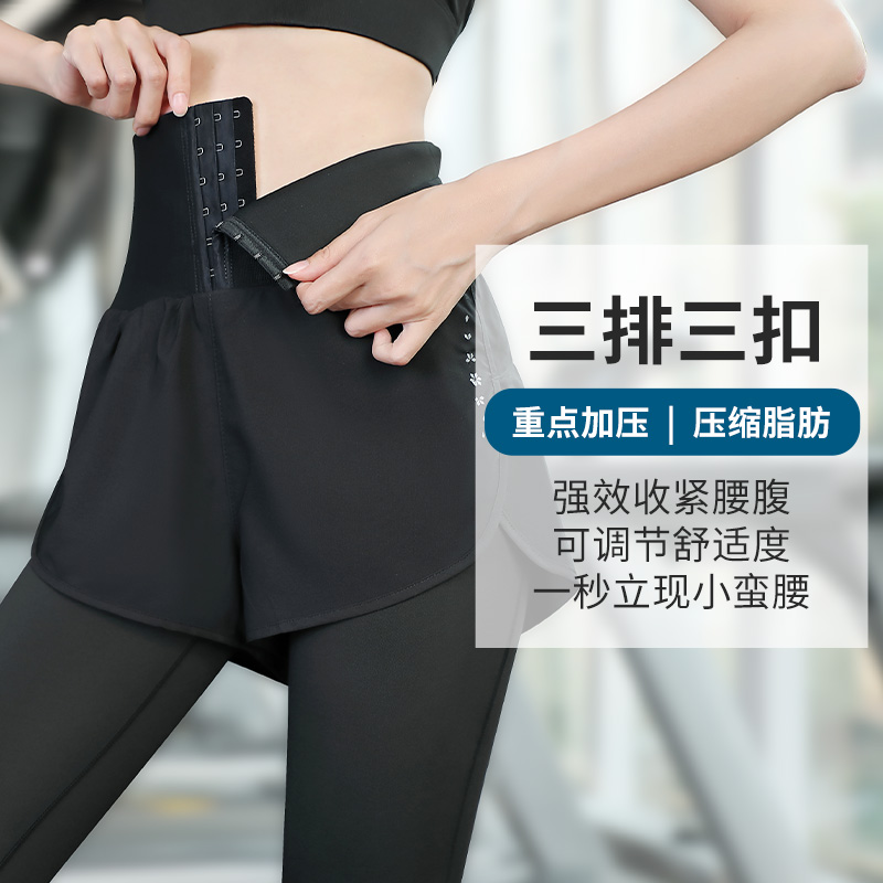 High waist corset fake two pieces of sweatpants women's size gym pants long pants training yoga autumn harvest belly fat MM200 pounds