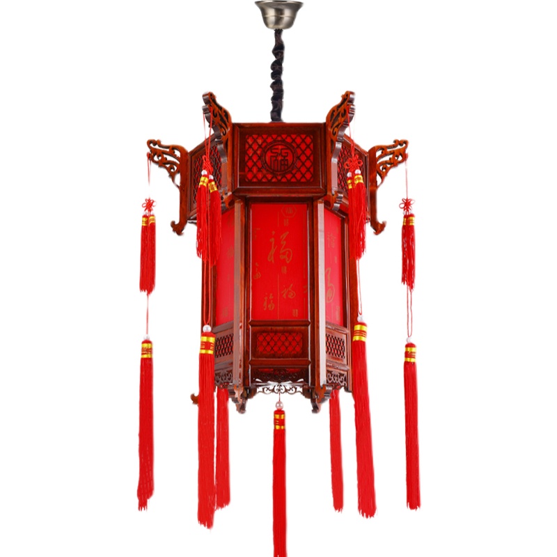 Chinese solid wood palace lamp imitation ancient hexagonal large red balcony chandelia Qiao relocating to the classical outdoor gate New Year's lantern