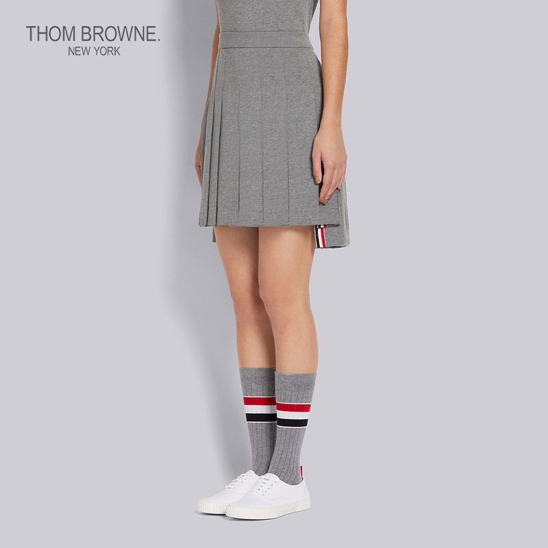 Ms. Thom Browne 2022 Summer medium grey pure cotton High waist 100 pleats short dress
