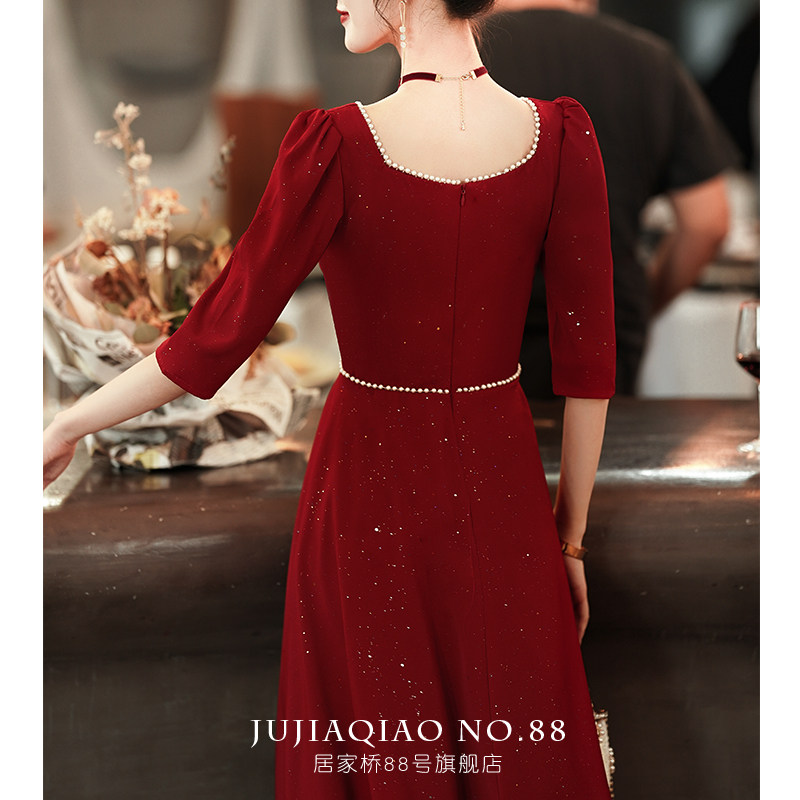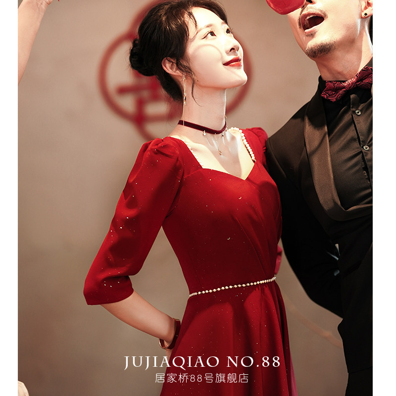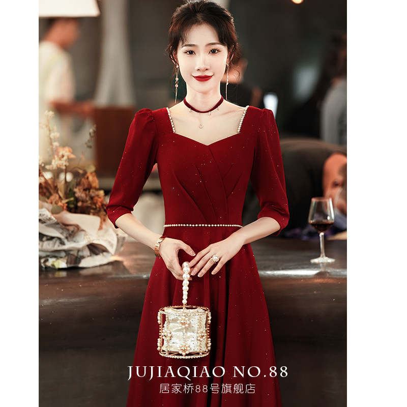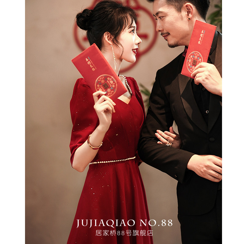 Toast to the bride 2022 new summer back door Long sleeves Wine Red Little Guy Engagement Gown Woman slim fit