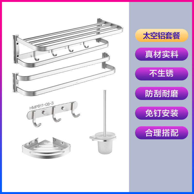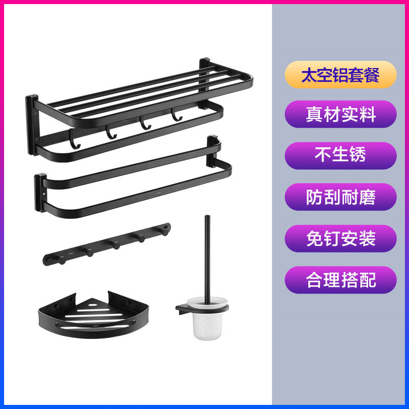 Hengjie Bathroom Flagship Store Space Aluminum Nail-Free Towel Rack Bath Towel Rack Free Of Punch Bathroom Pendant Suit New Product
