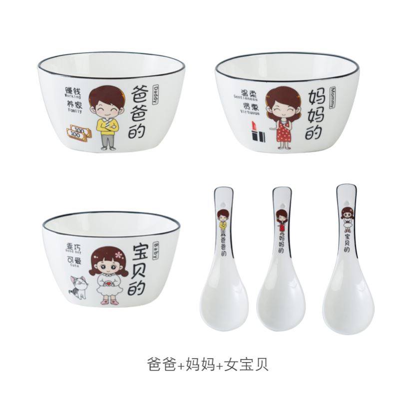 Grandpa Grandma (2 bowls and 2 spoons) Grandpa and grandma (2 bowls and 2 spoons) VIP male and VIP female (2 bowls and 2 spoons) Dad and mother Girl baby (3 bowls and 3 spoons) Dad Mom Boy baby (
