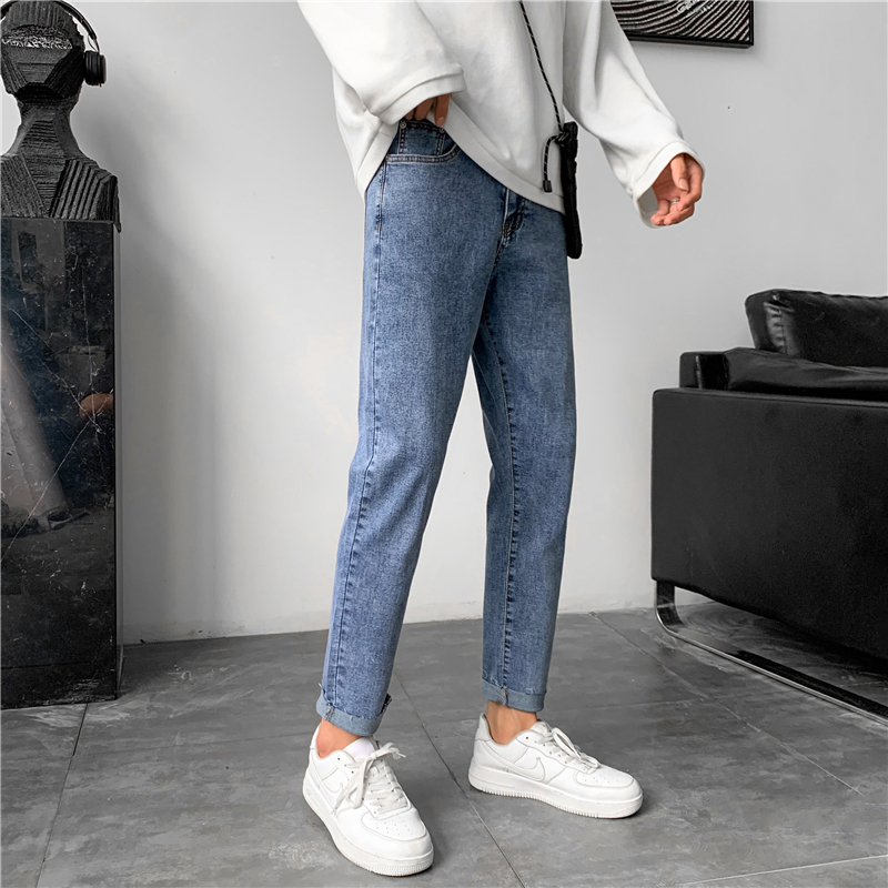 Jeans Men's Autumn Tide Brand Slim Small Feet Fray 2021 New Hong Kong Style Casual Versatile Long Pants Tide Brand