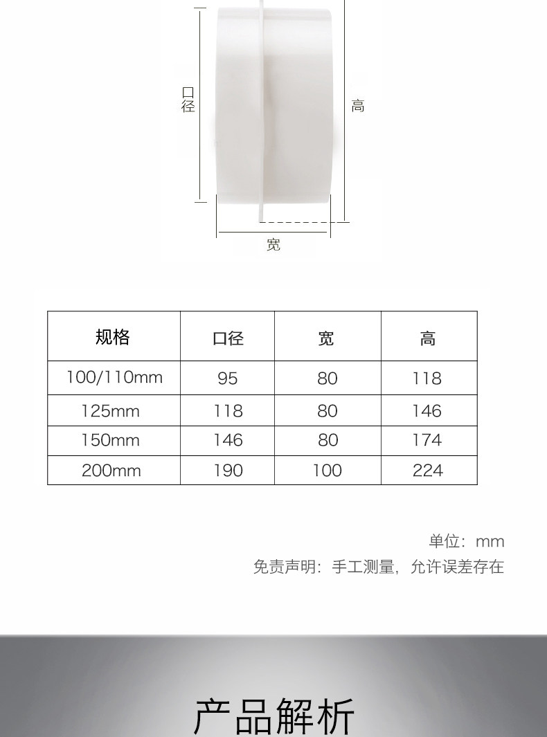 4-inch 100mm5 inch 125mm6 inch 150mm8 200mm 150mm8