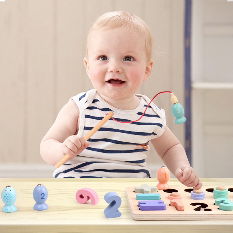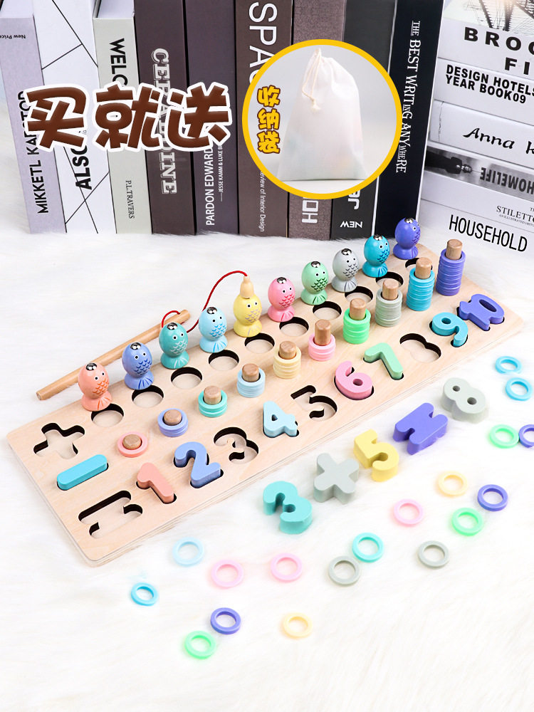 Woody Early Teach Geometric Children's Digital Building Blocks Toys Puzzle Phishing to the board three-in-one male girl baby