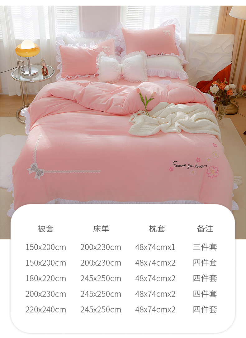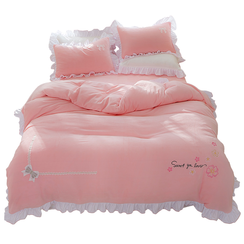 Milk Suede Four Pieces Of Coral Suede Flannel Winter Quilt Cover Bifacial Princess Wind Three Sets Thickened Bed Supplies