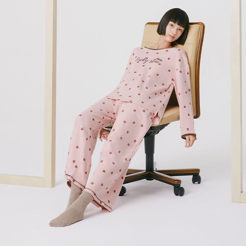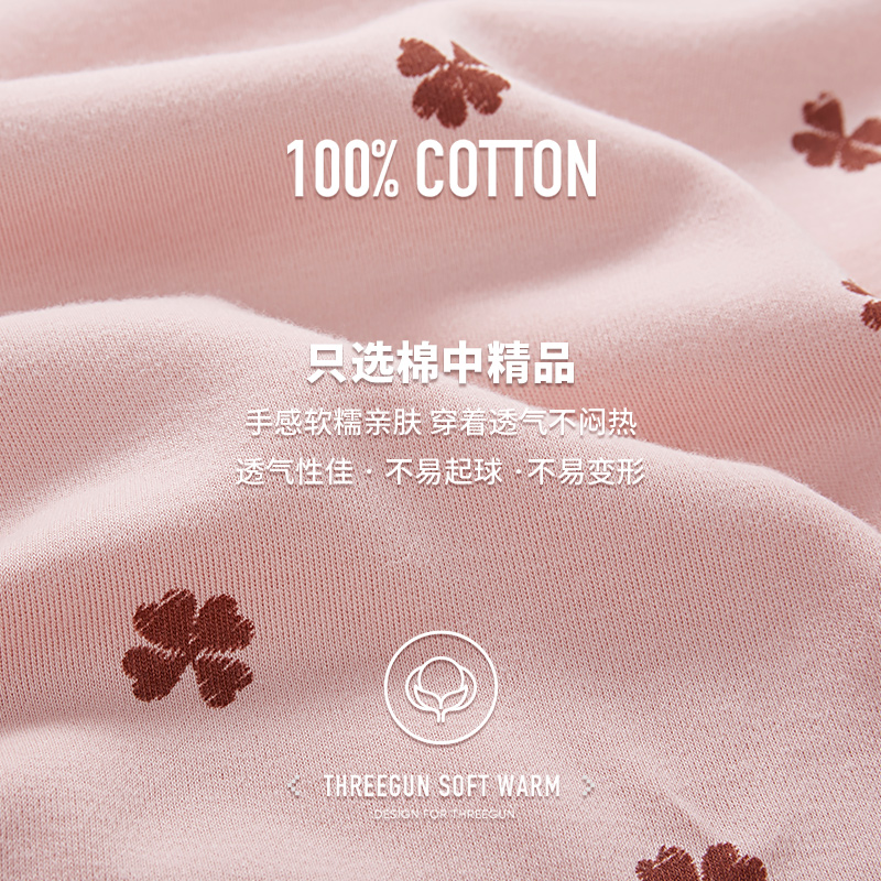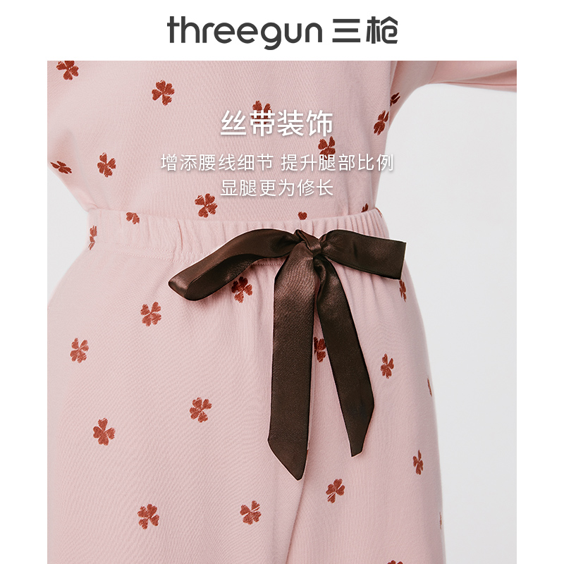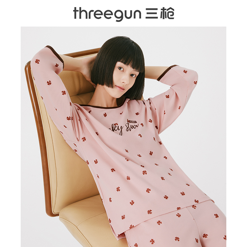 Three-gun underwear official flagship store homewear suit female nine-point sleeve cotton ladies pajamas 2-piece set 81952D0