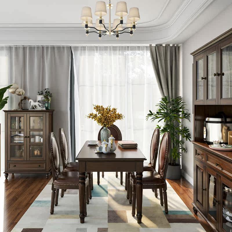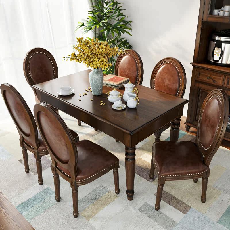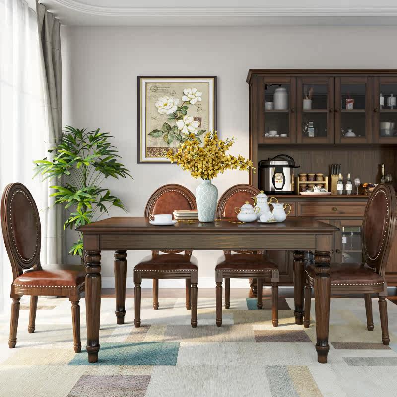American-style solid wood dining table and chair combination 4--6 people dining table rectangular dining table small apartment home dining table old