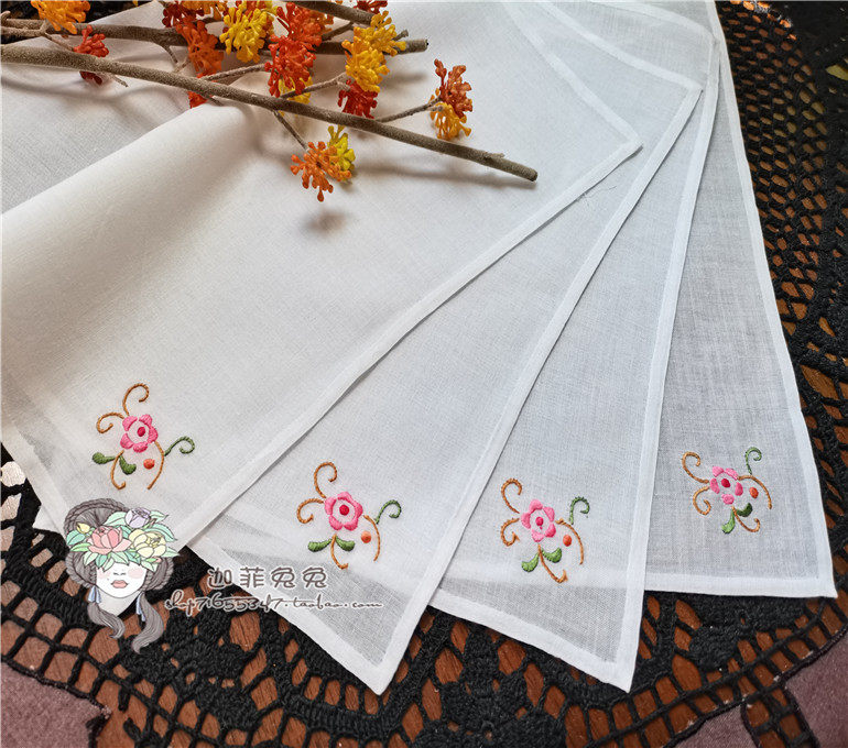Ex-gratia @ foreign trade stock Chaozhou embroidered pure cotton thin yarn white collar hand letter foreign guests Gift Handkera