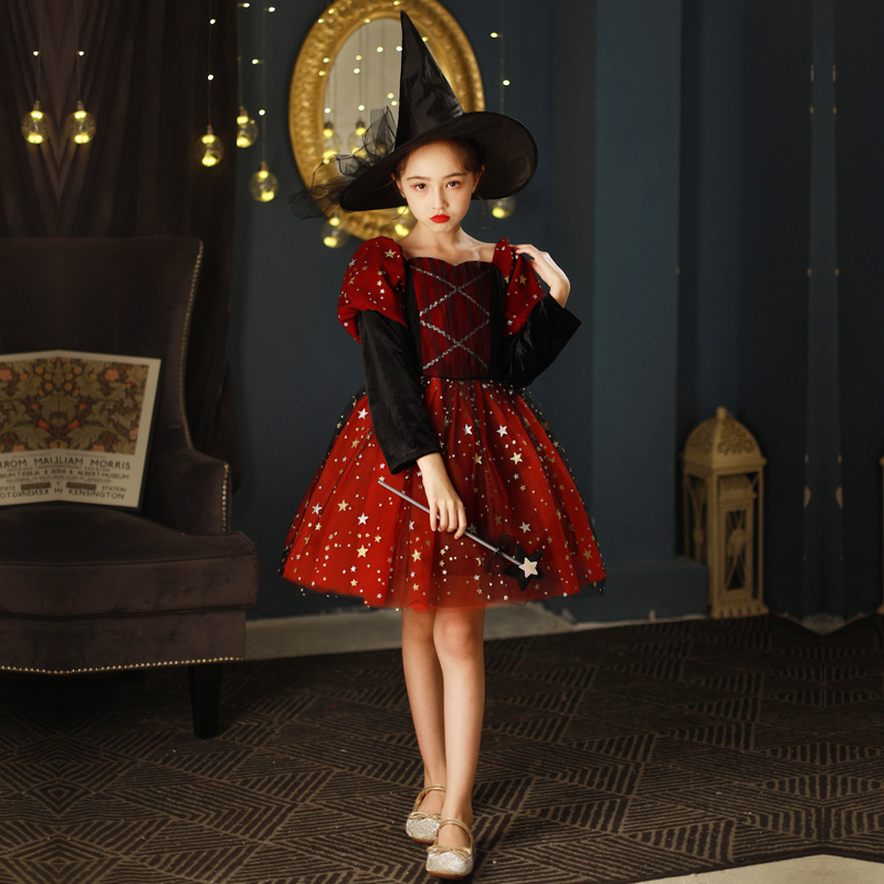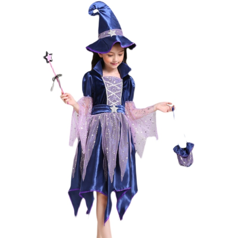 Halloween children's costume girls witch elf costume cos makeup party kindergarten witch princess dress