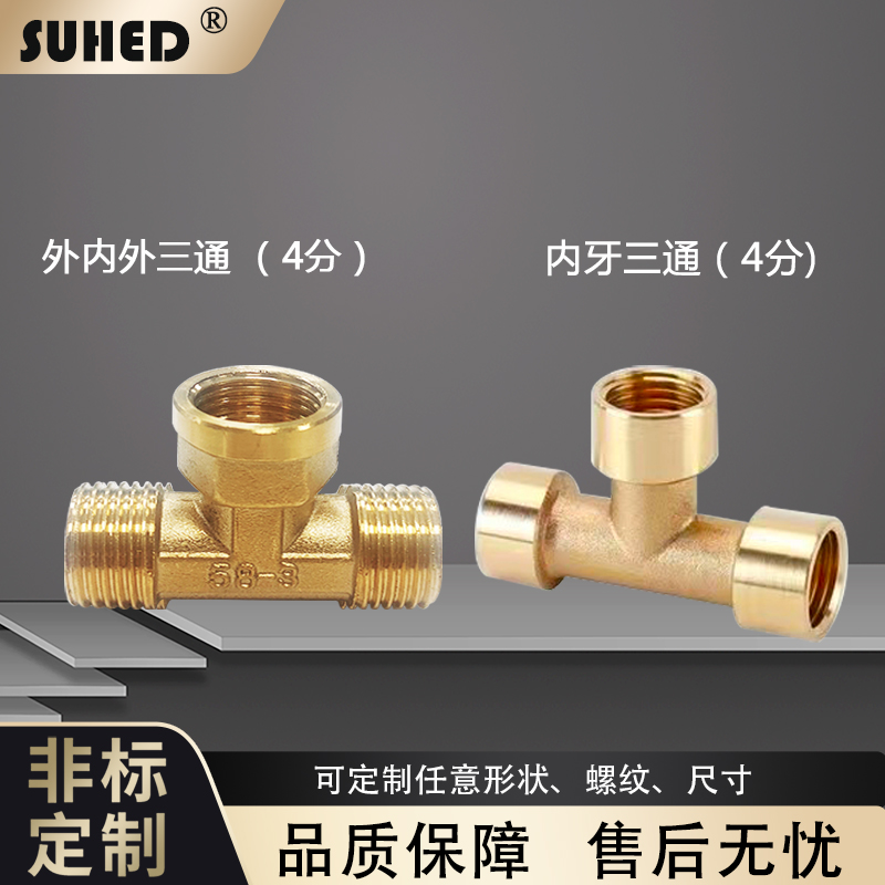 Pressure gauge conversion joint 4 points M20*1 5 internal and external wire teeth quick plug three-way copper thread pneumatic core G1 2
