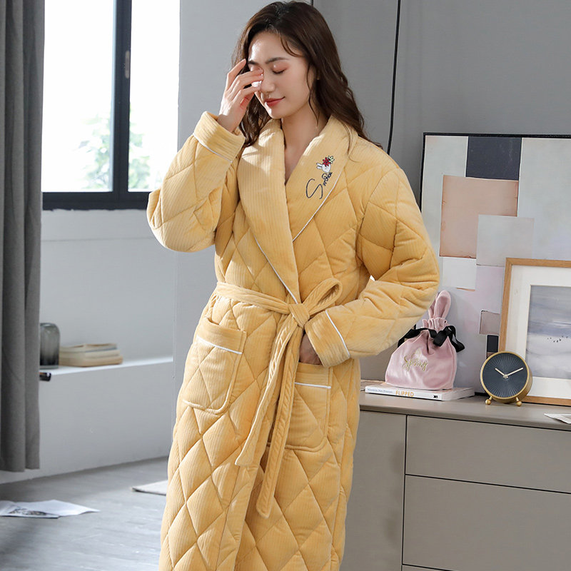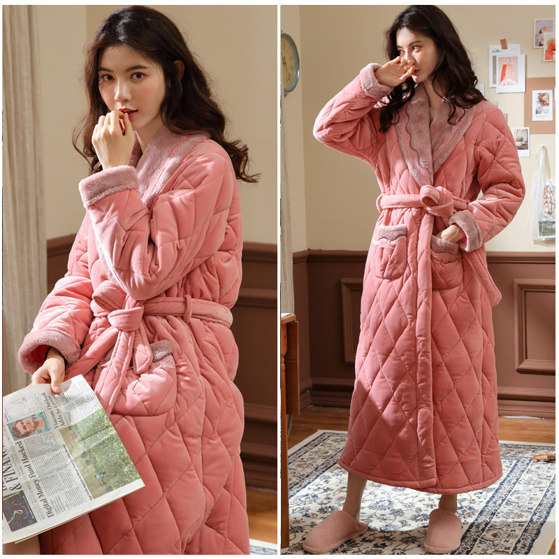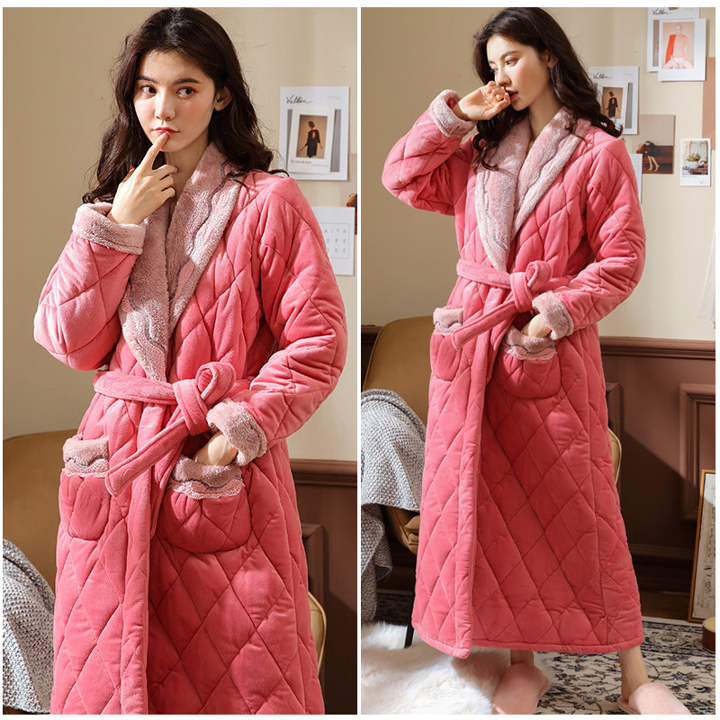 Sleeping Burqa Woman Autumn Winter Style Thickened lengthened Coral Suede Warm Lady Pyjamas Winter Three Layers Clip Cotton Plus Suede Bathrobe