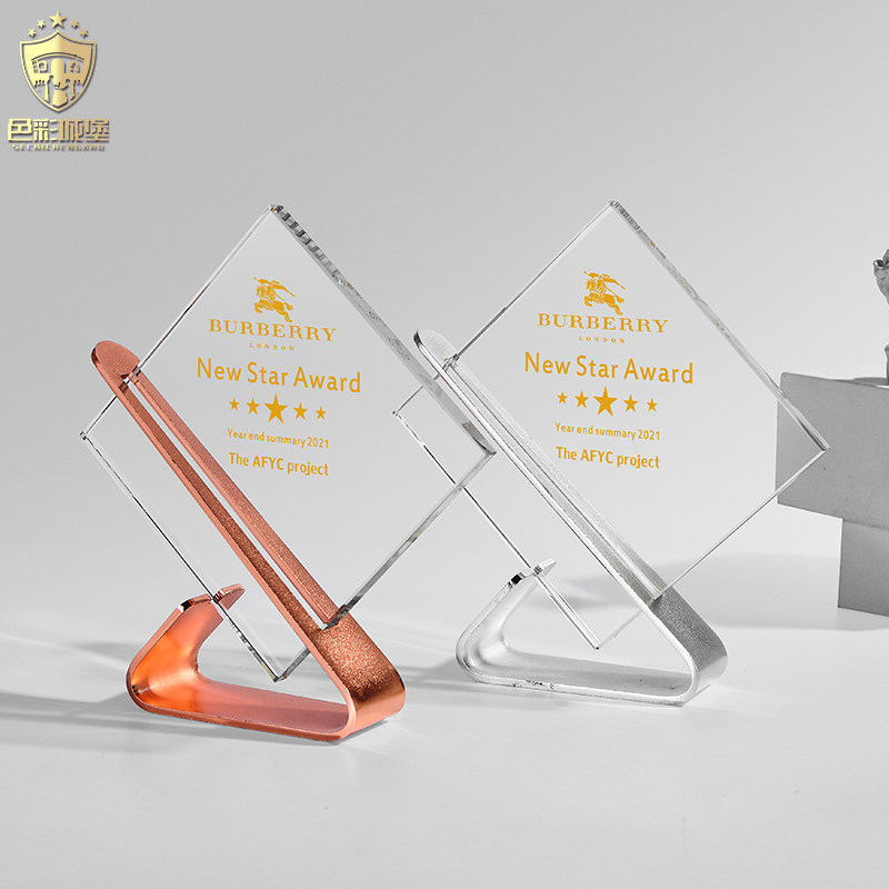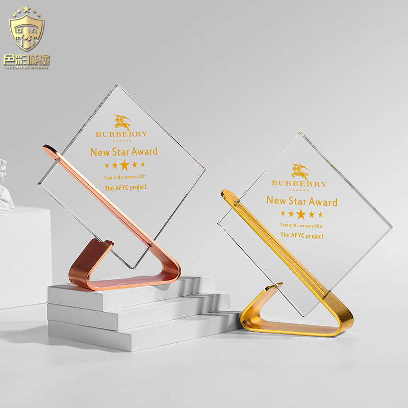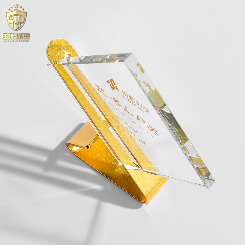 Creative metal trophy custom crystal square medal gold silver copper custom annual meeting awards excellent sales souvenirs