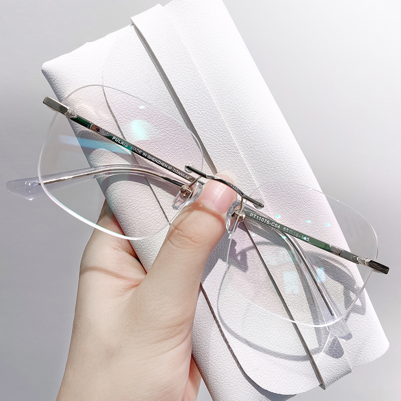Ultra-light pure titanium frameless myopia glasses women's online can be equipped with degree big face thin eye frame Korean version trendy