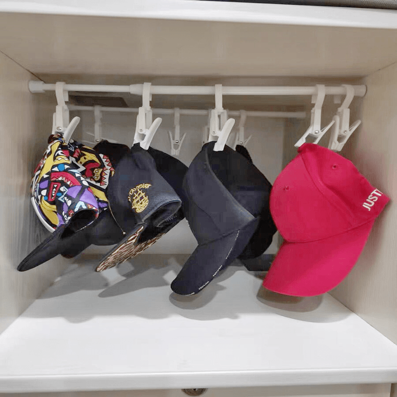Hanging Hat Containing Layer Shelf Hooks Wardrobe Finishing Deviner Telescopic Rod rotary clips Release Hat Baby Drool
