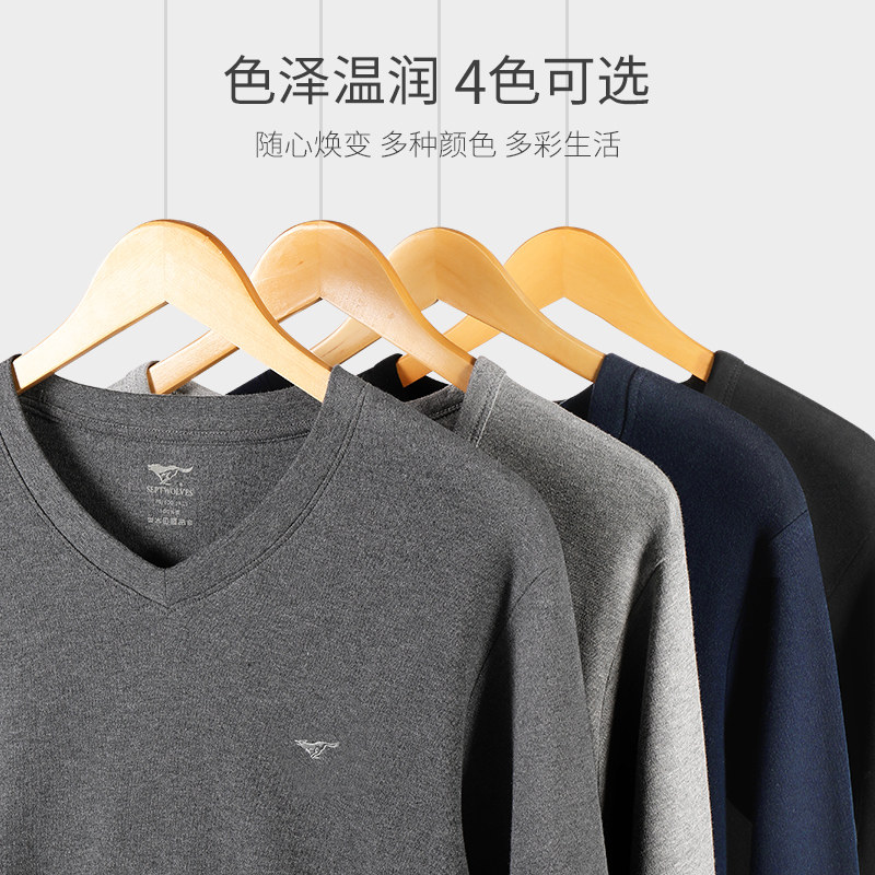 Seven wolves V neckline for men's spring and autumn blouses pure cotton sweatshirt for men in old age V collar thin