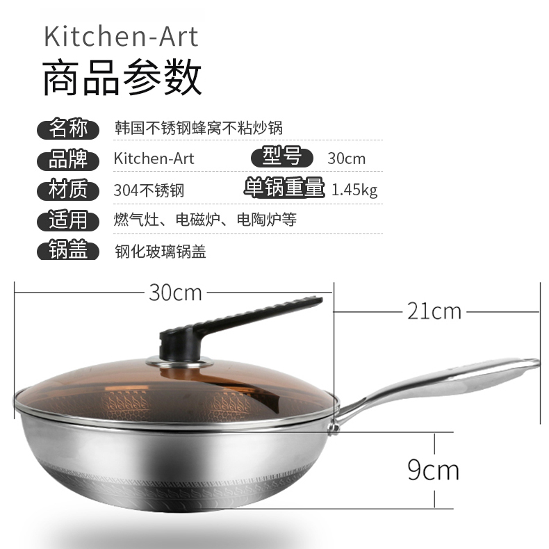 South Korean Kitchen-Art stainless steel frying pan without pan honeycomb veins uncoated domestic induction cooker frying pan