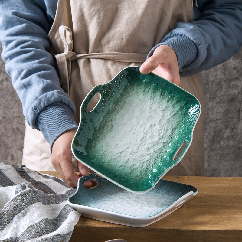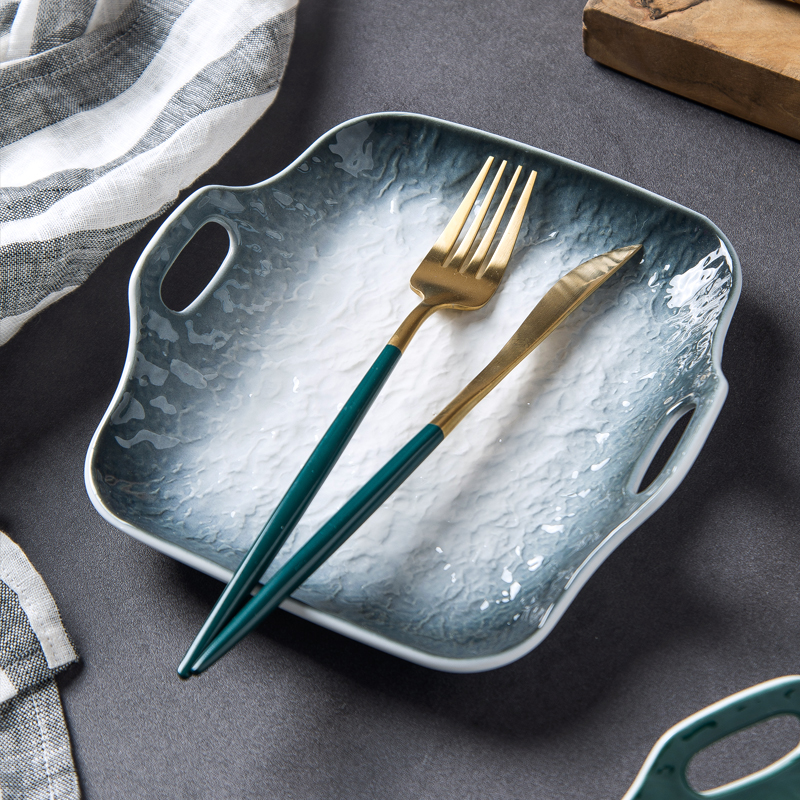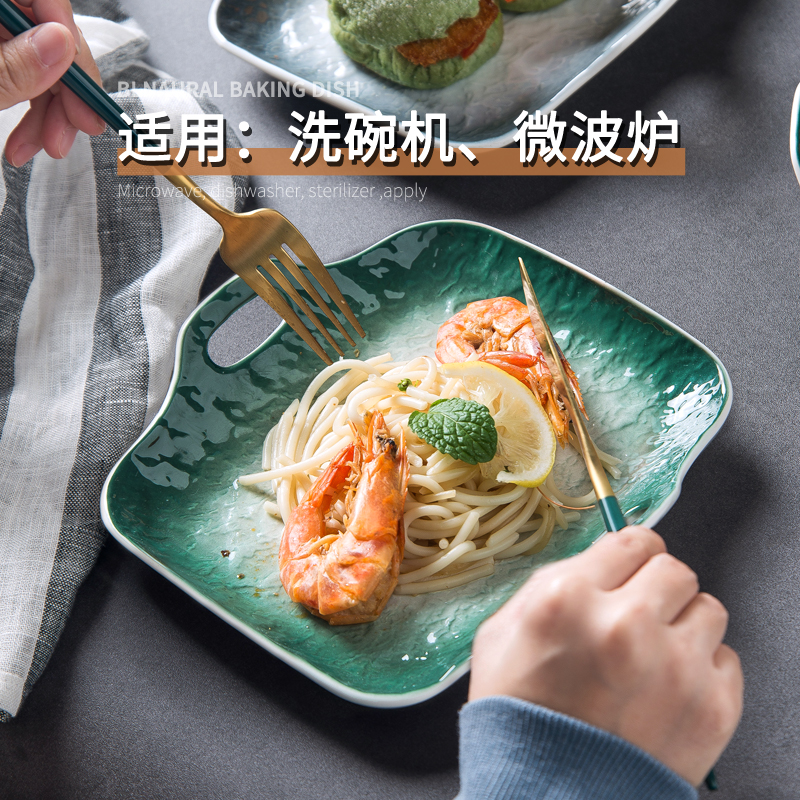 Nordic creative binaural baking tray breakfast household net red ins wind ceramic rectangular underglaze color dinner plate fish