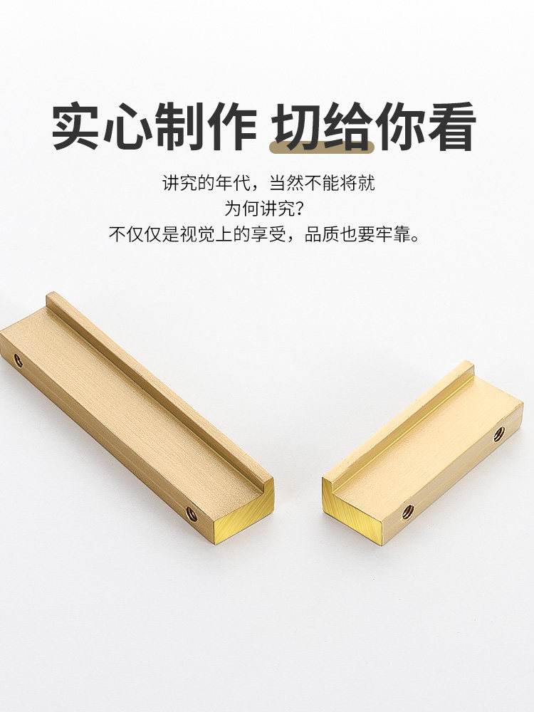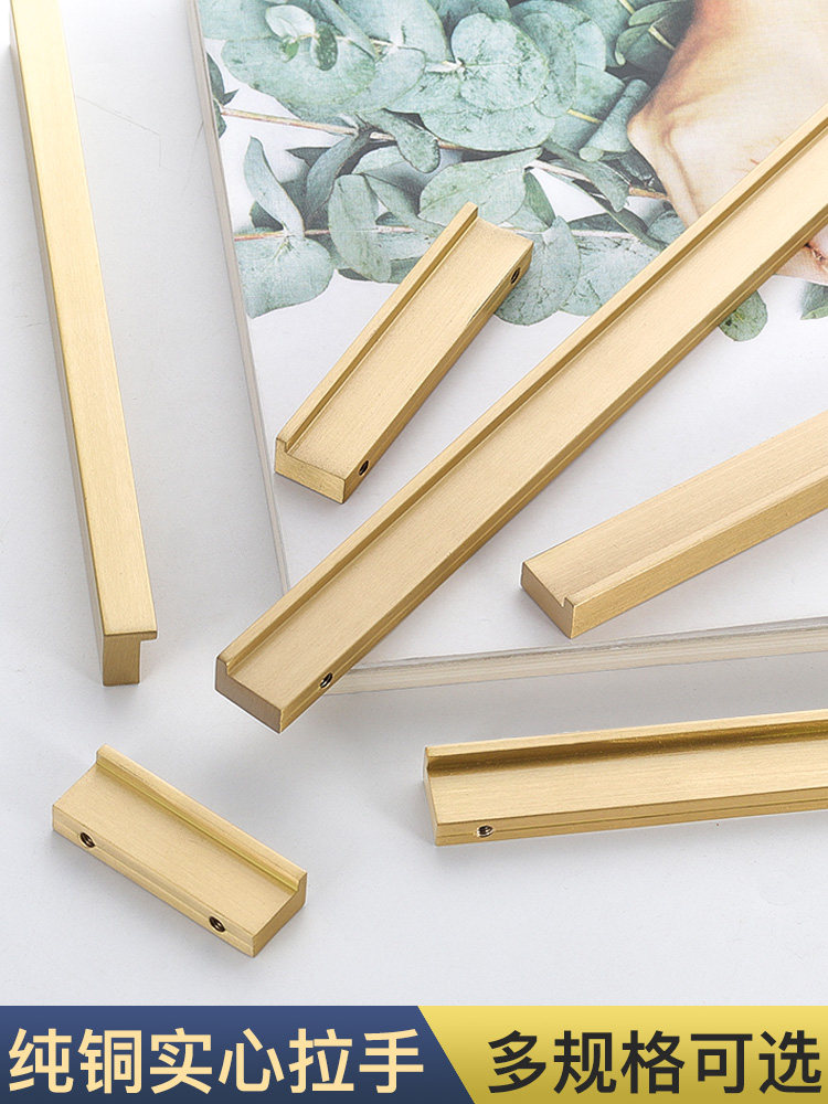 Pure copper gold small handle modern minimalist cabinet door handle drawer wardrobe double hole European light luxury gold small handle