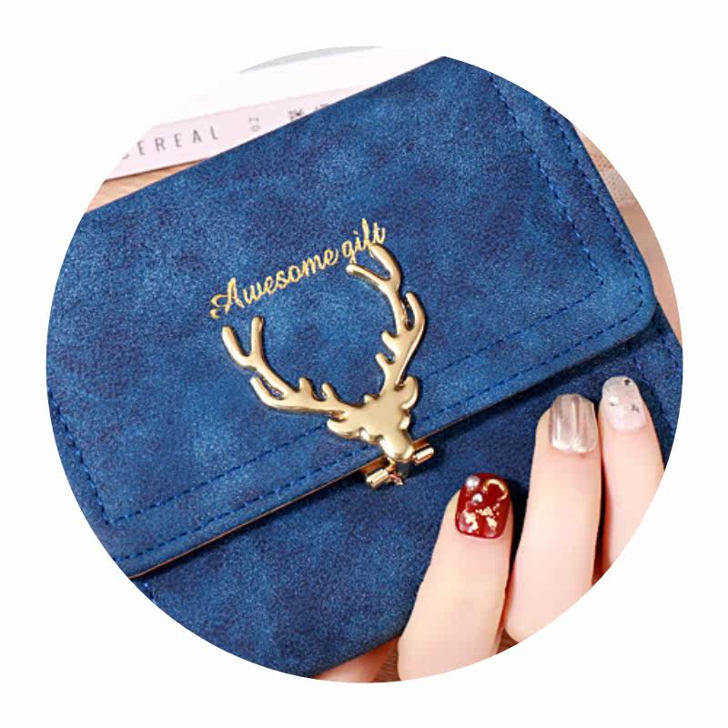 Wallet Women's ins the new short ladies Korean version student cute little fresher sweet and pure color small deer folding money clip bag