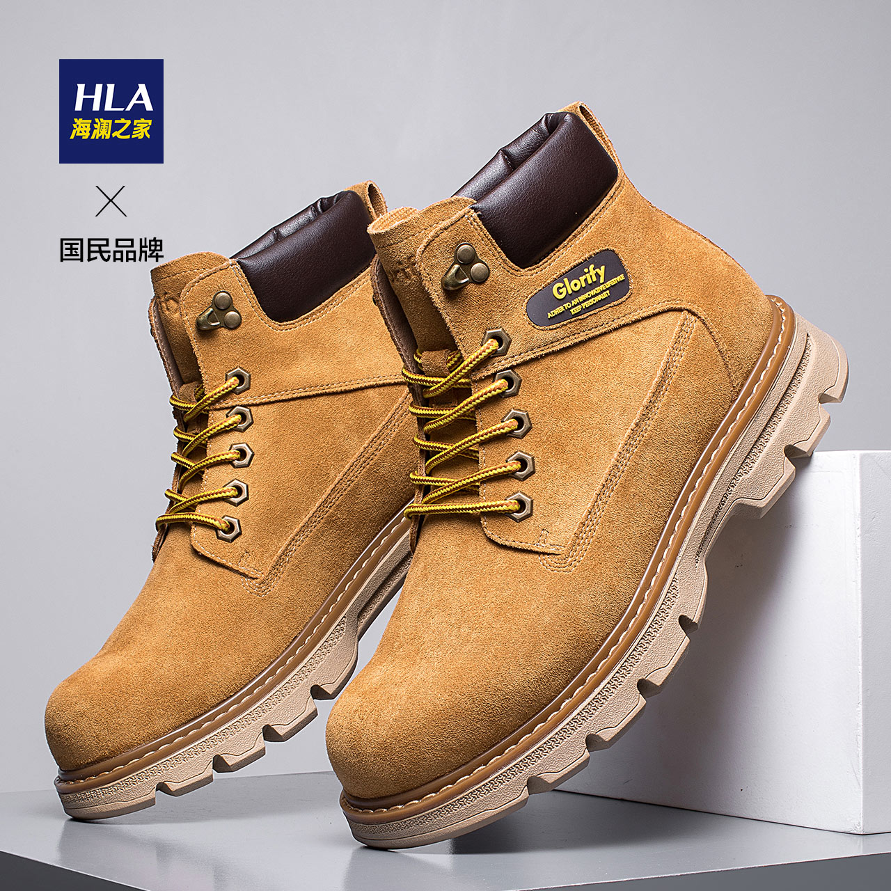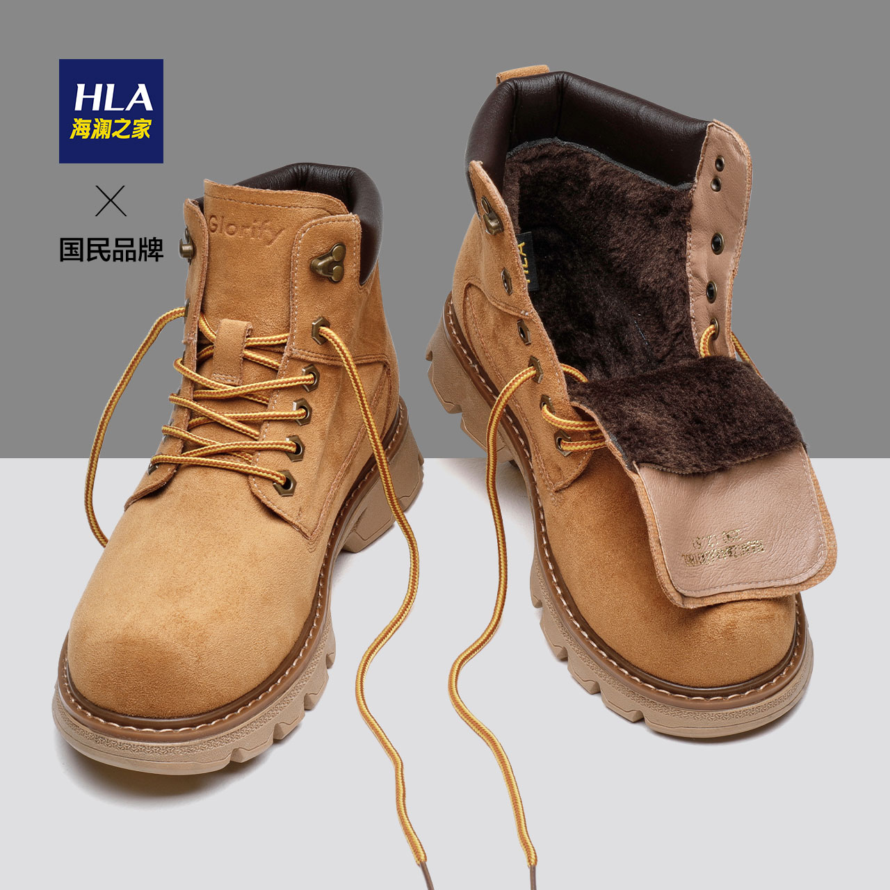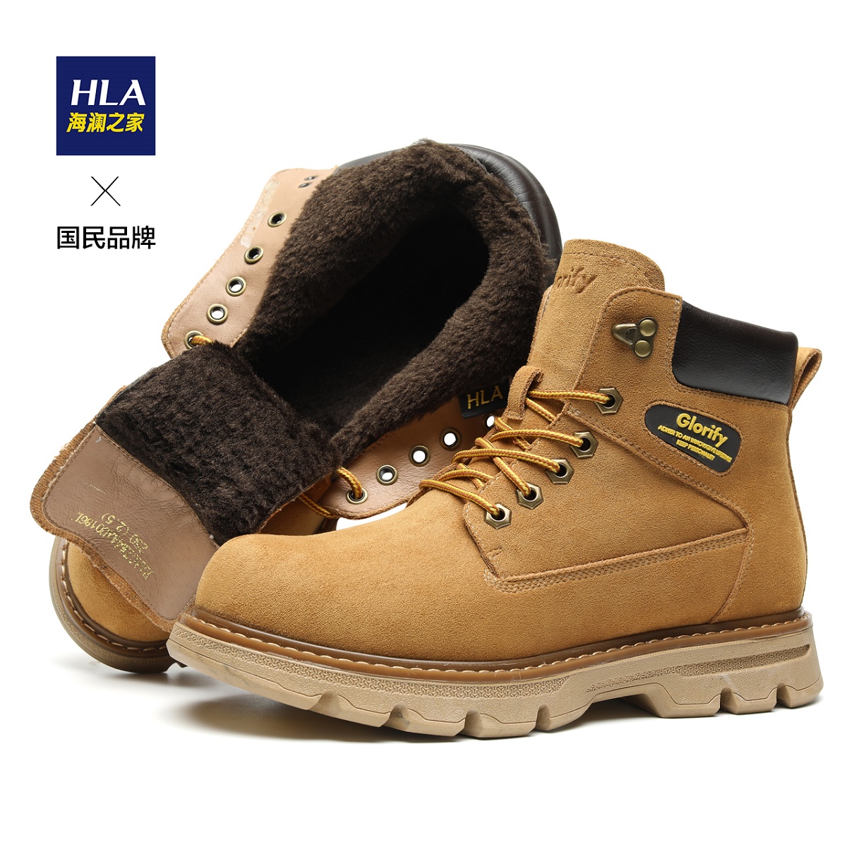 HLA Sea Lanlan House Men's Shoes Outdoor Tooling Boots 2021 Autumn Winter New High Drum Rhubarb Boots Add Suede Boots
