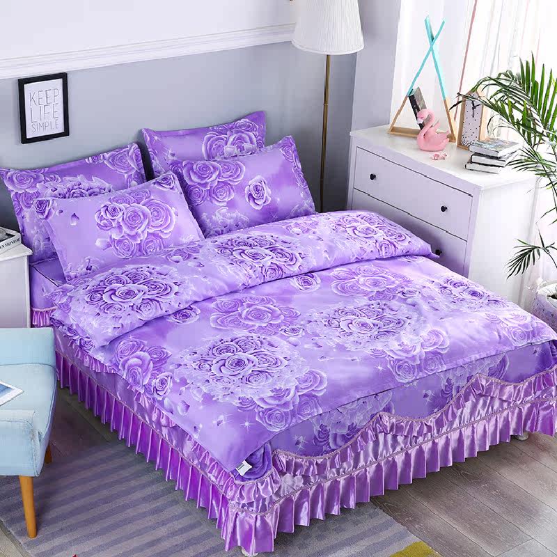 A light and luxurious bed skirt with four sets.