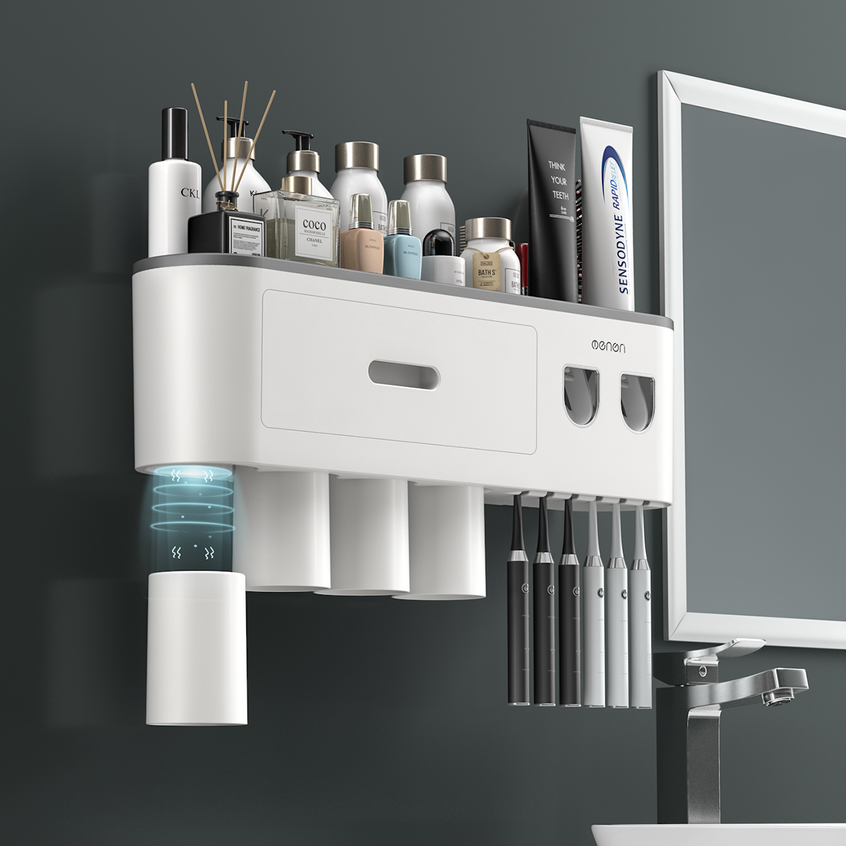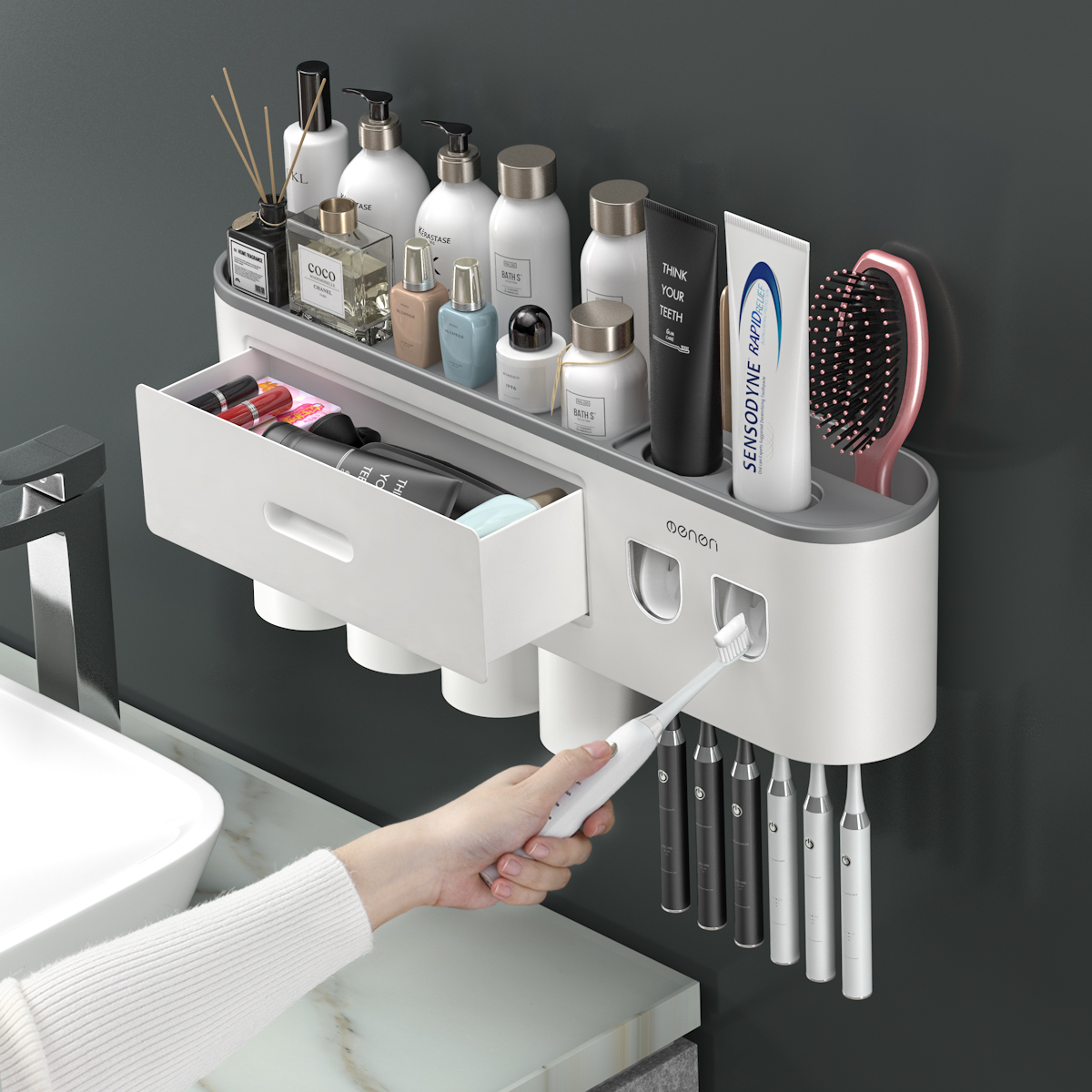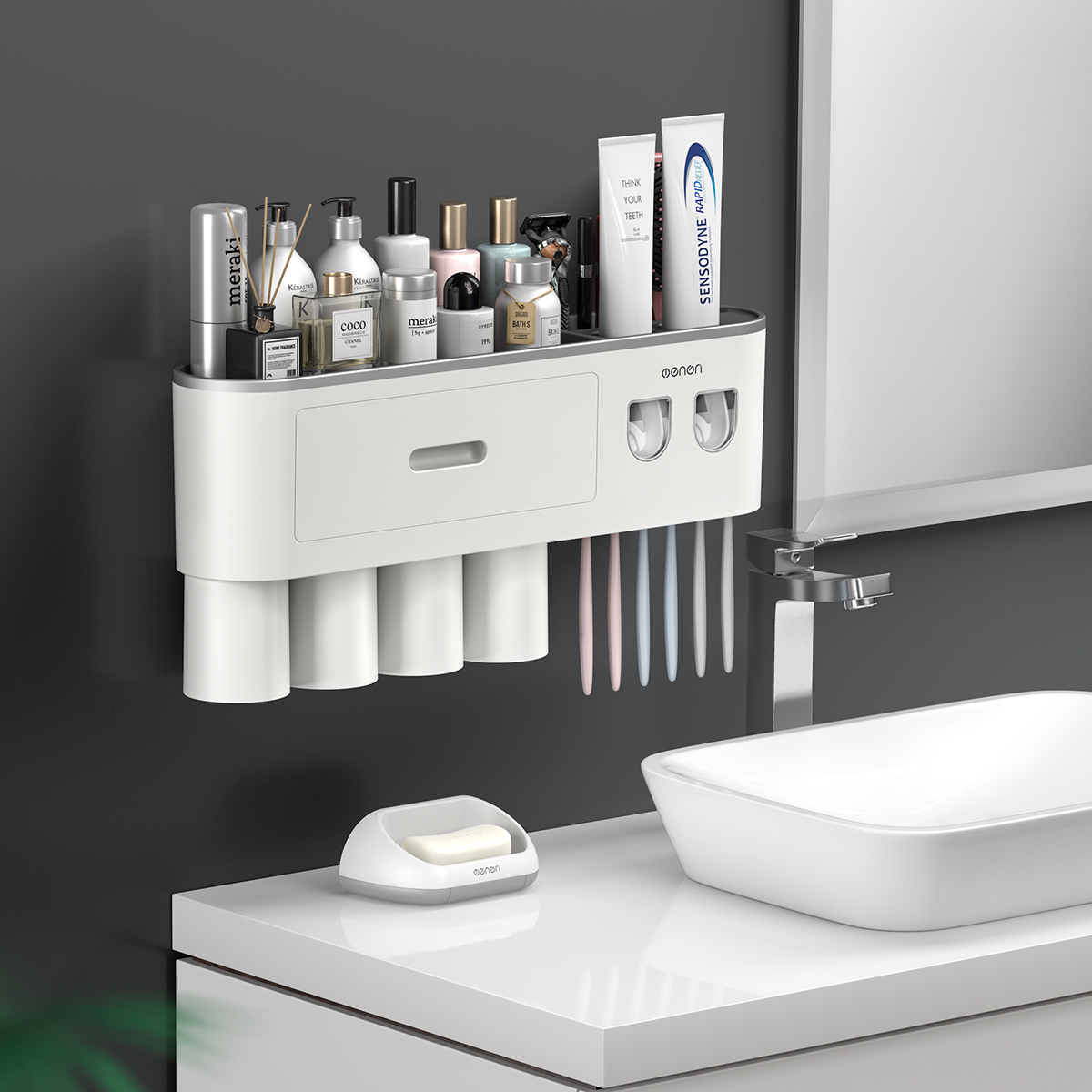 2 cups gray (single-squeeze toothpaste dispenser) 2 cups black (single-squeeze toothpaste dispenser) 2 cups gray (double-squeeze toothpaste dispenser) 2 cups black (double-squeeze toothpaste dispenser) 3 cups gray (single-squeeze toothpaste dispenser)