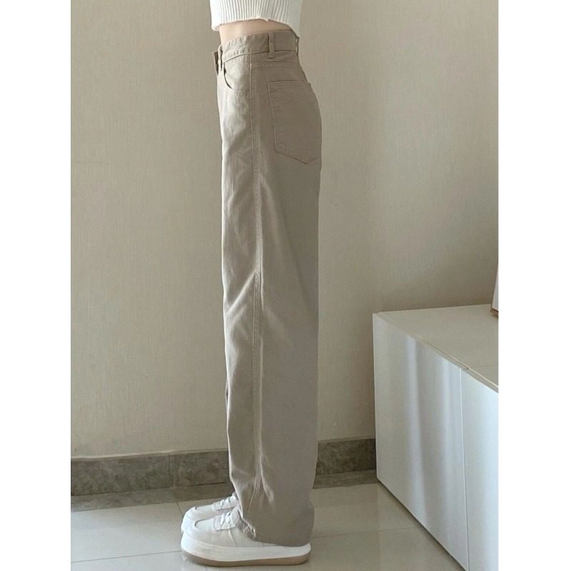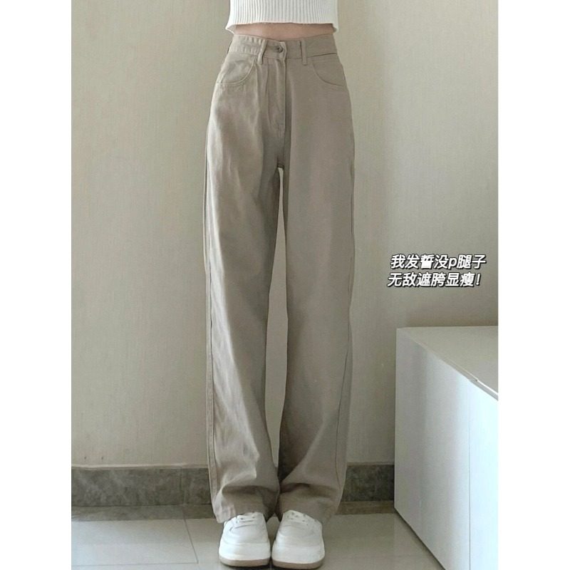 Straight-leg jeans women's small autumn and winter new khaki design pants high-waisted slim mopping cigarette pants